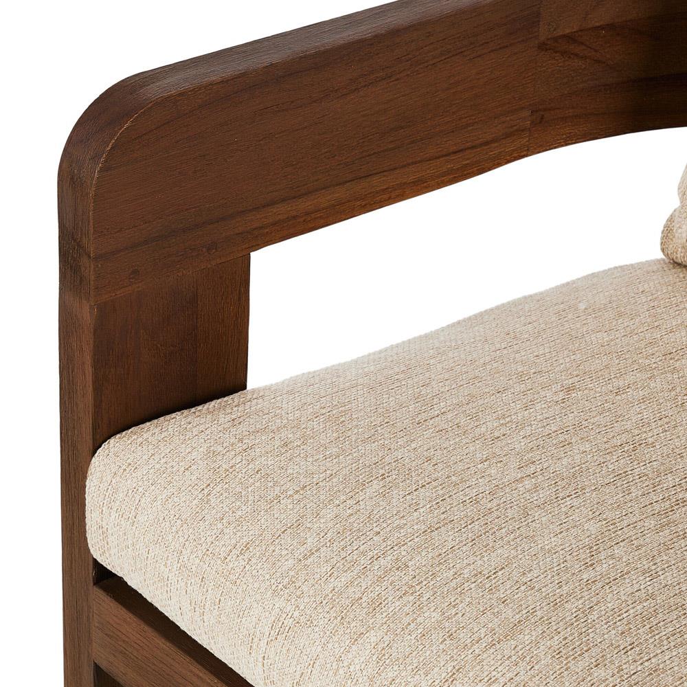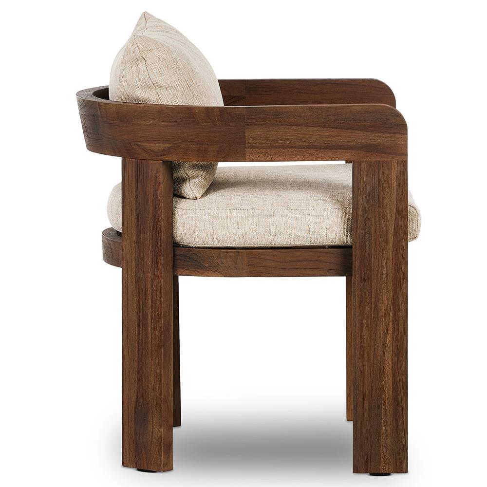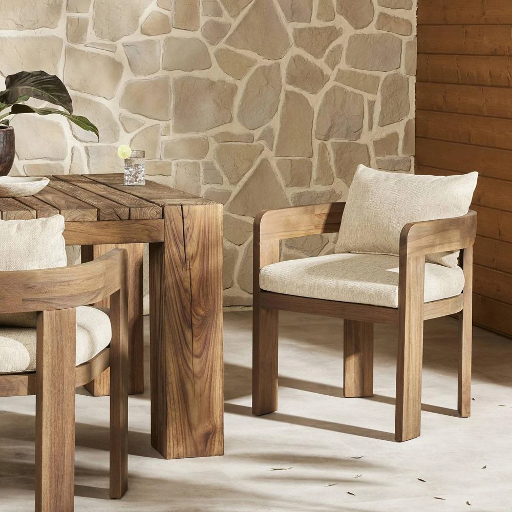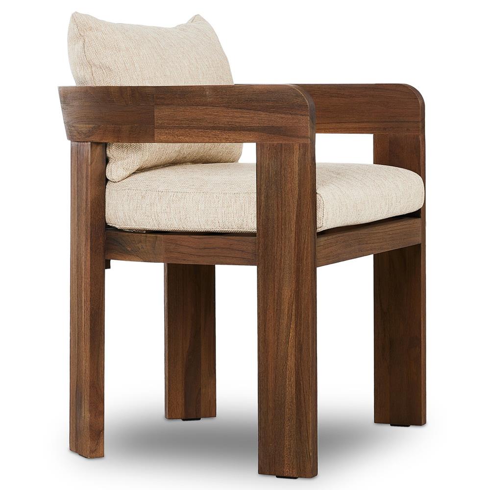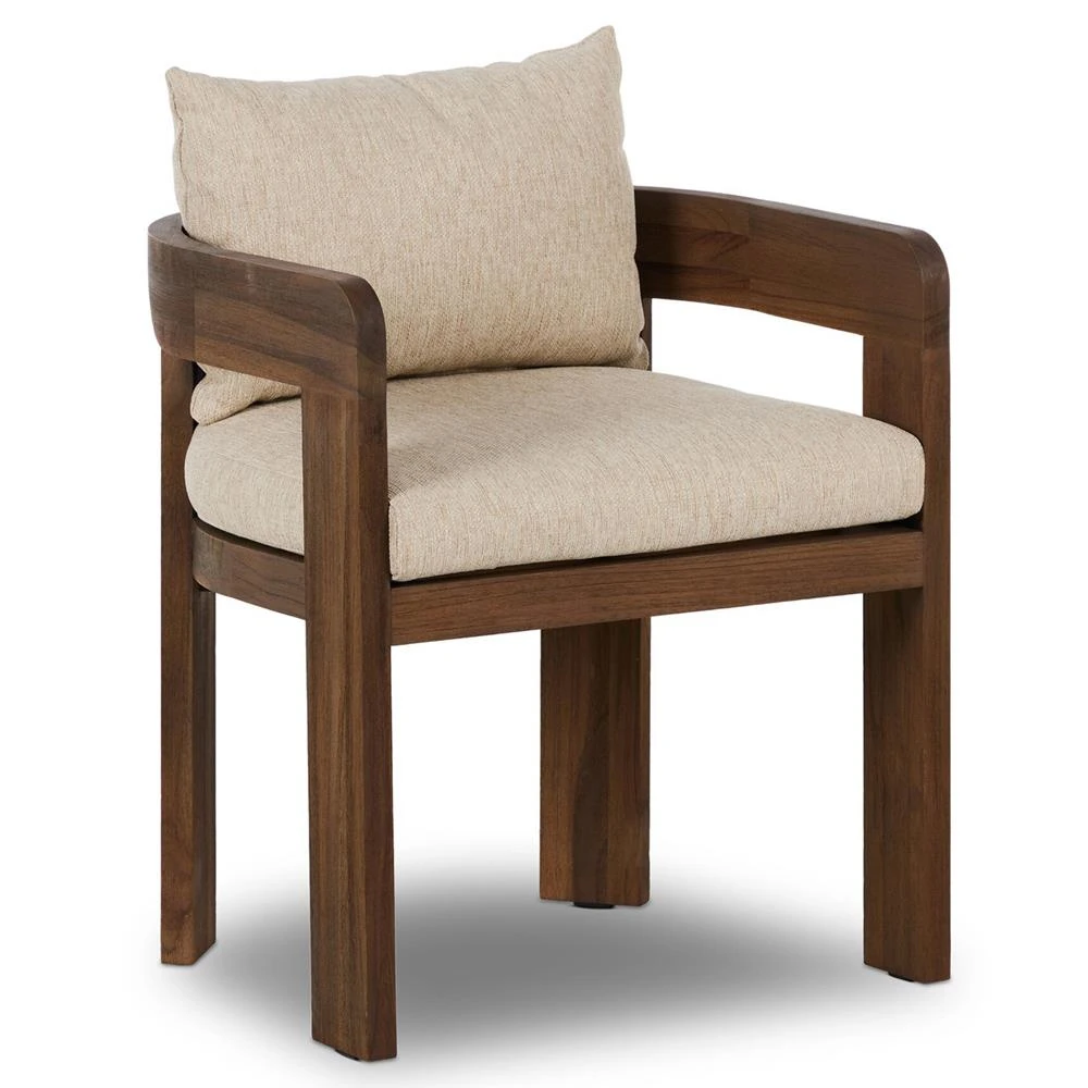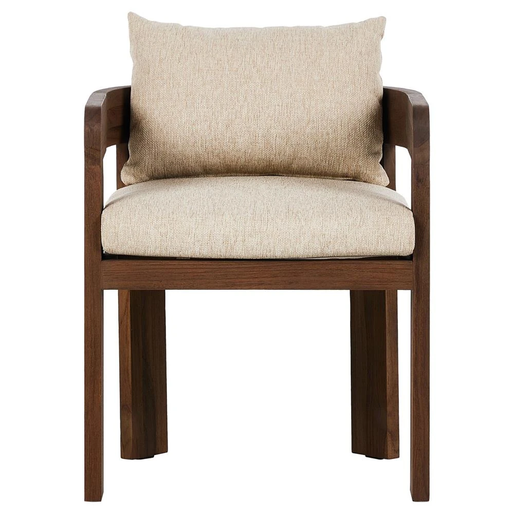 Aviel Rustic Lodge Beige Upholstered Teak Outdoor Dining Arm Chair