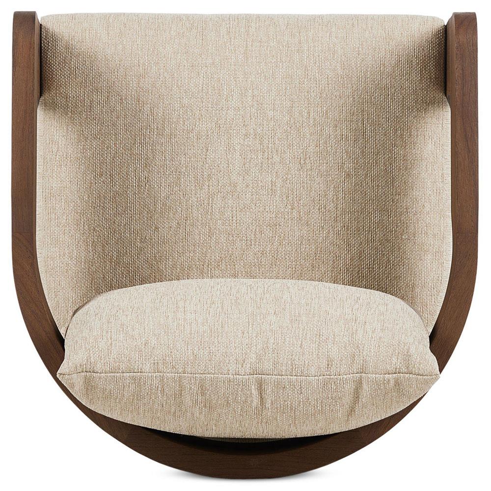 • Aviel Rustic Lodge Beige Upholstered Teak Outdoor Swivel Chair|Kathy Kuo Home