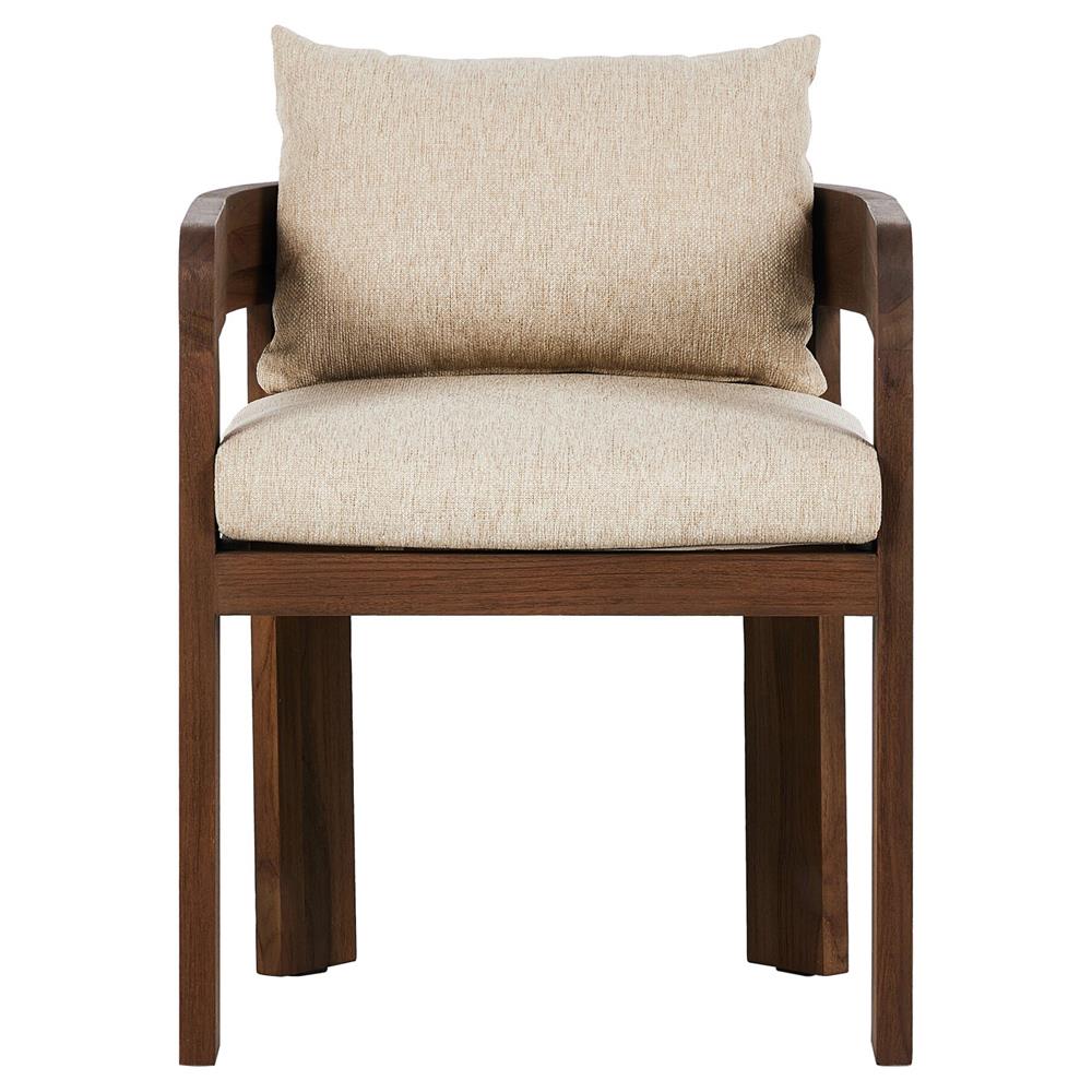 • Aviel Rustic Lodge Brown Upholstered Teak Outdoor Dining Arm Chair|Kathy Kuo Home