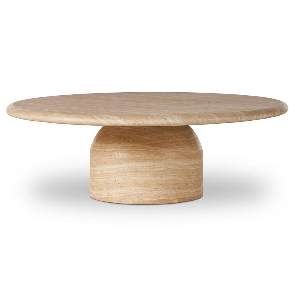 • Maya Modern Classic Beige Concrete Round Outdoor Coffee Table|Kathy Kuo Home