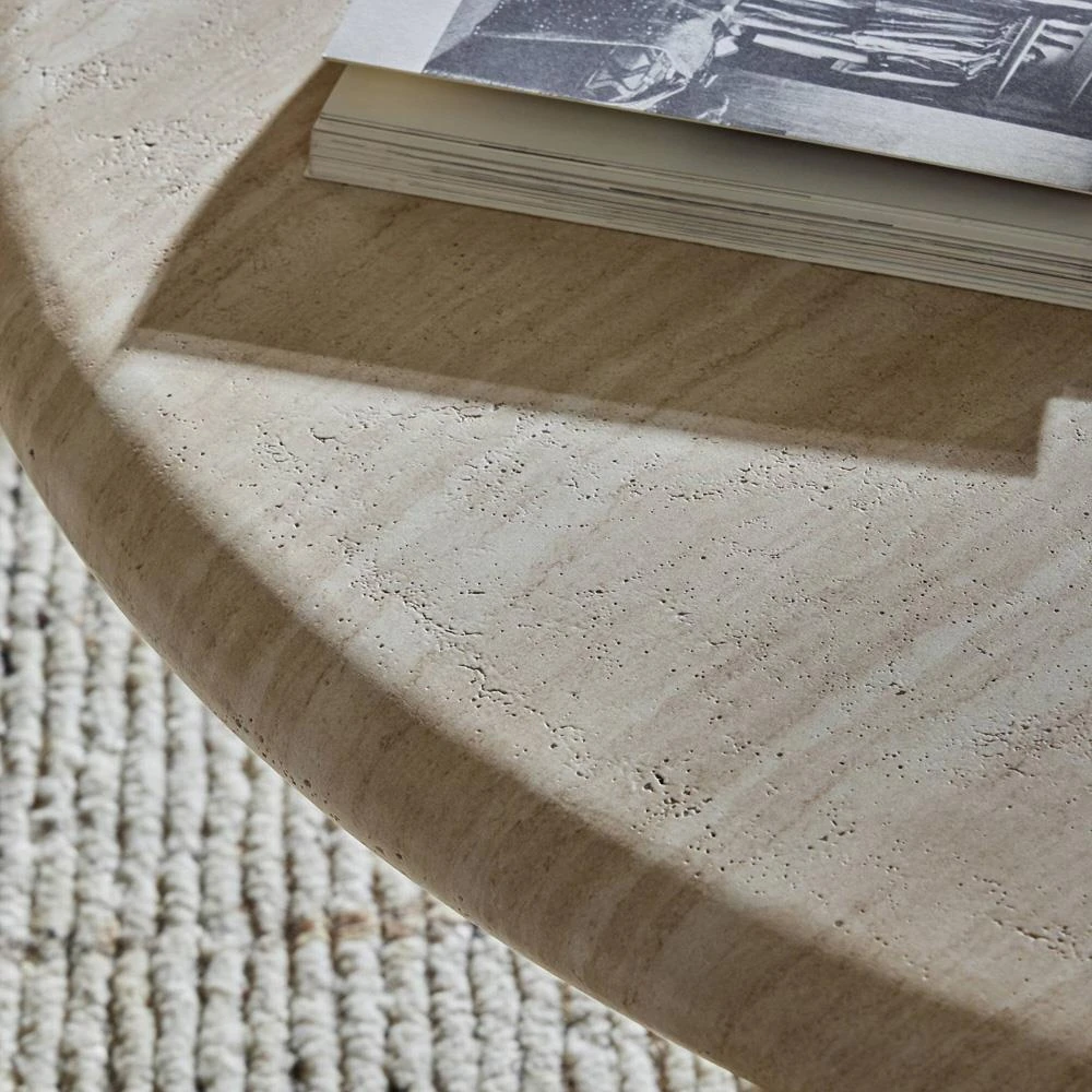 • Features a dome-shaped pedestal base that supports a rounded tabletop with bullnose edges
