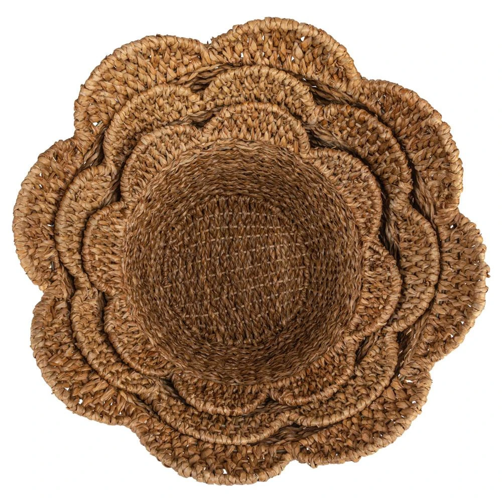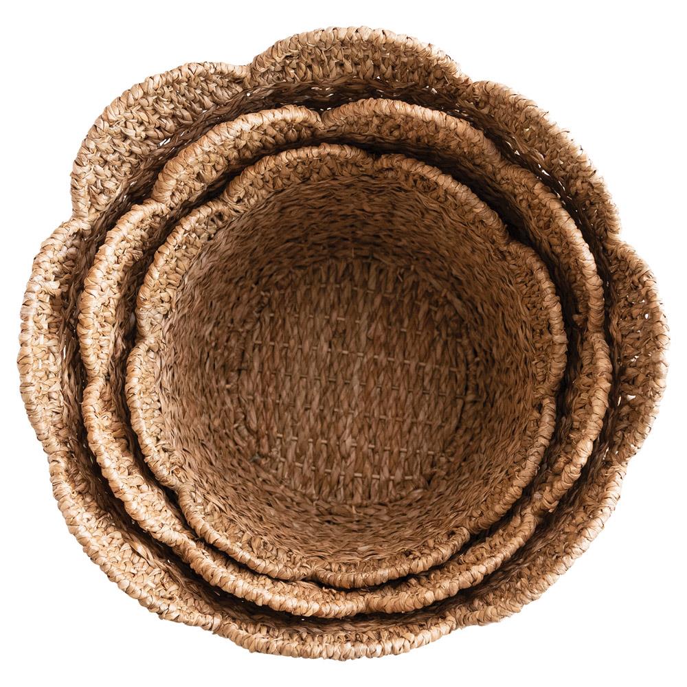 Cadmus Coastal Natural Rattan Scalloped Basket - Set of 3