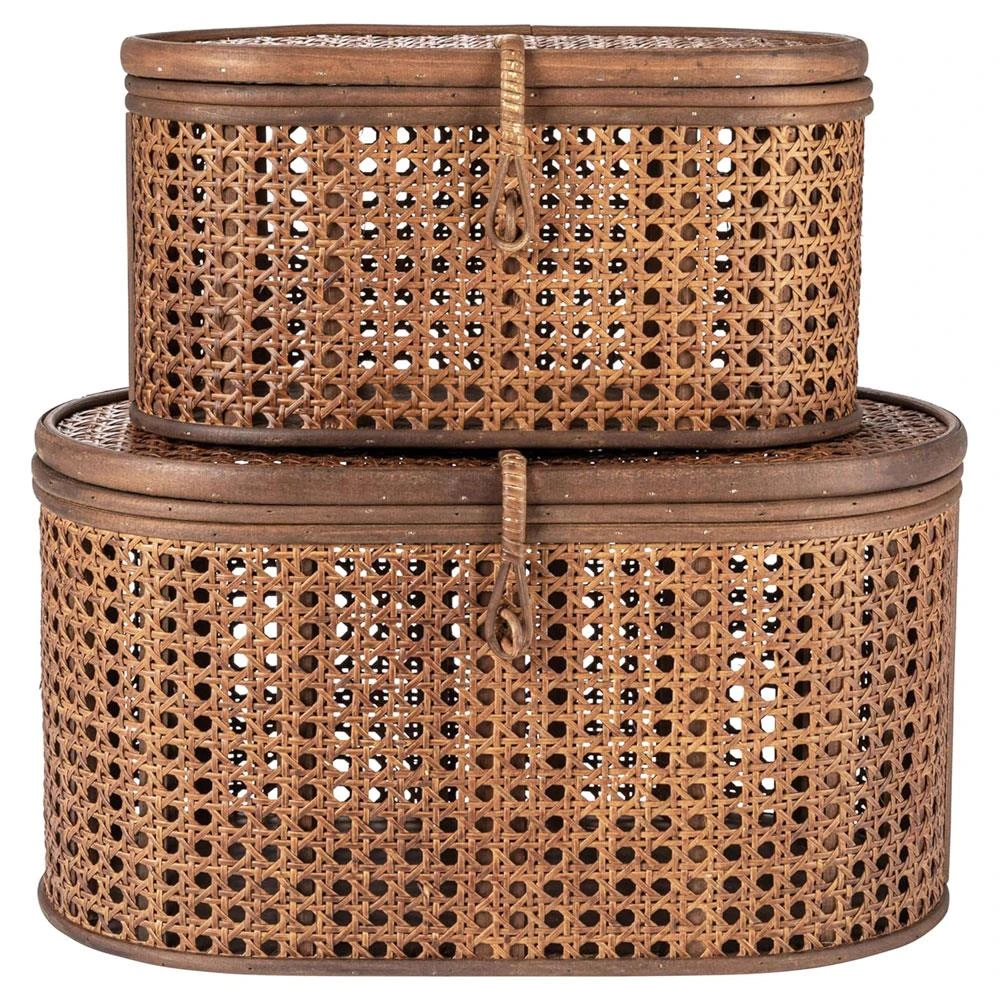 Myrtle Coastal Beach Dark Brown Rattan Decorative Box - Set of 2