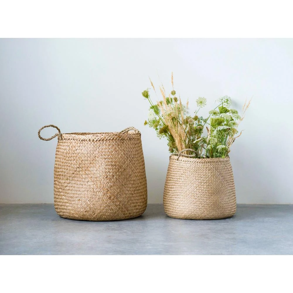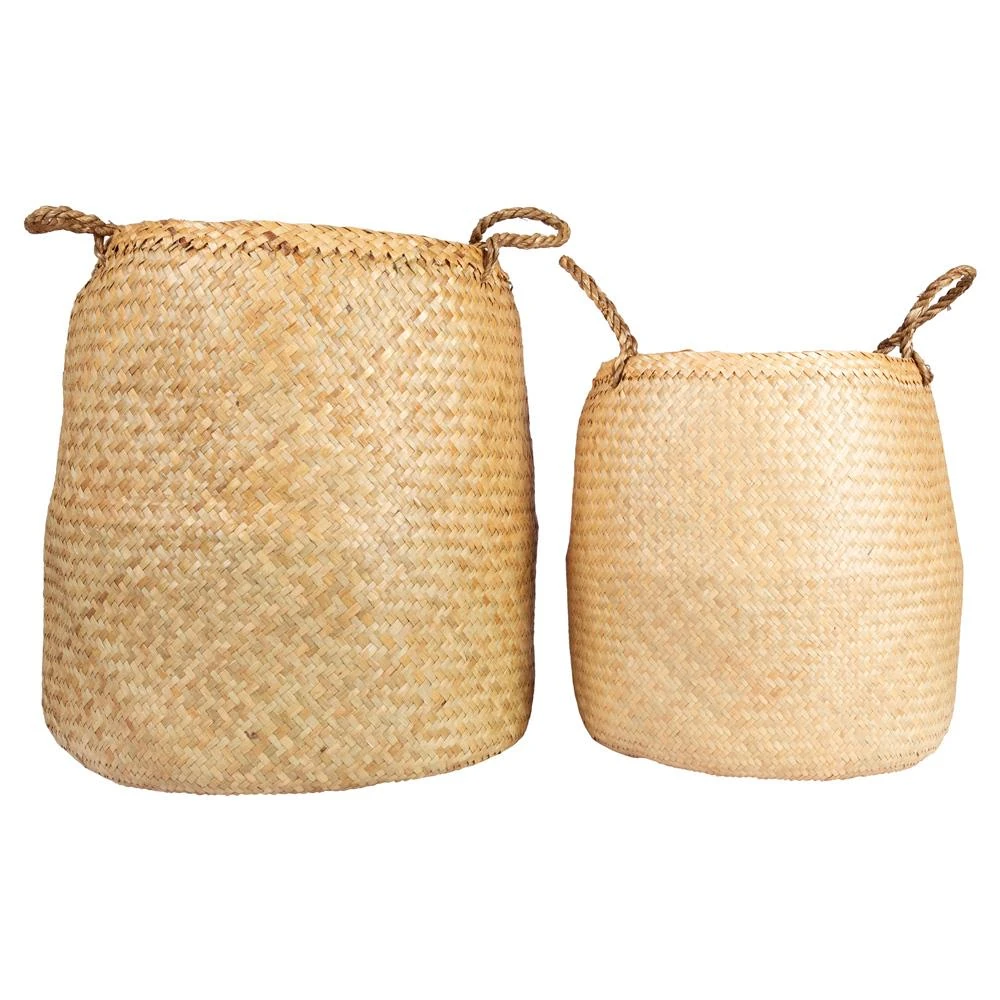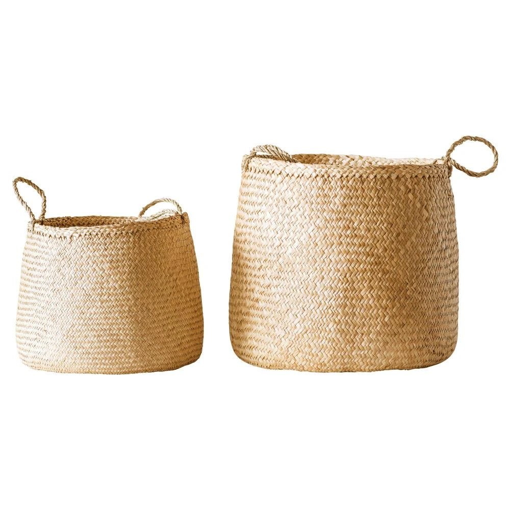 Verena Coastal Beach Natural Woven Seagrass Floor Basket - Set of 2