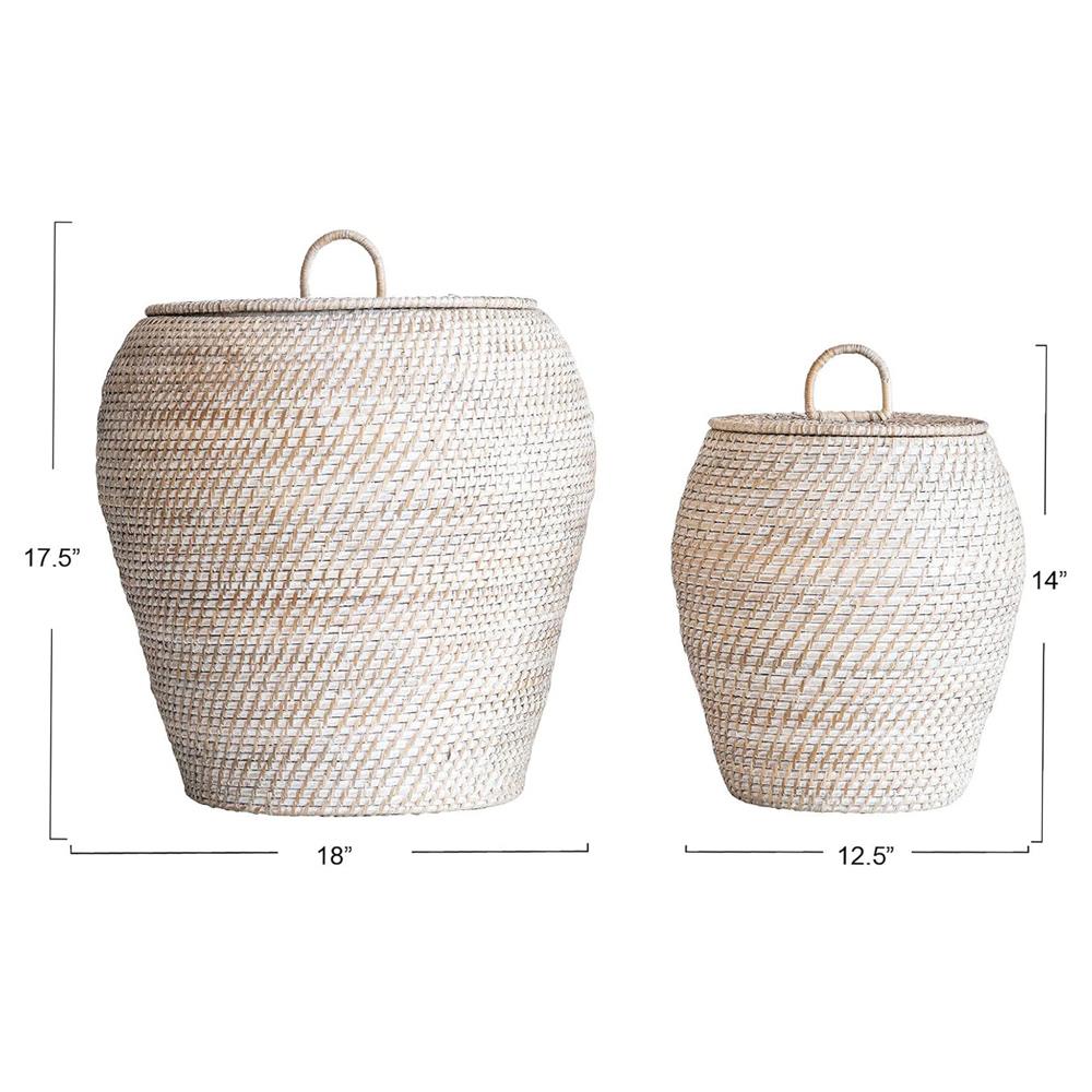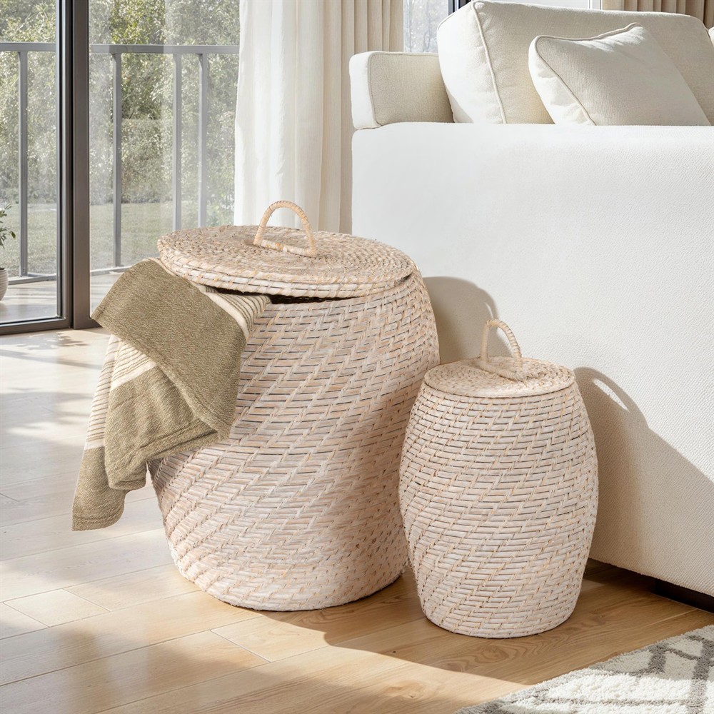 Hilda Coastal Beach Whitewash Rattan Hamper - Set of 2