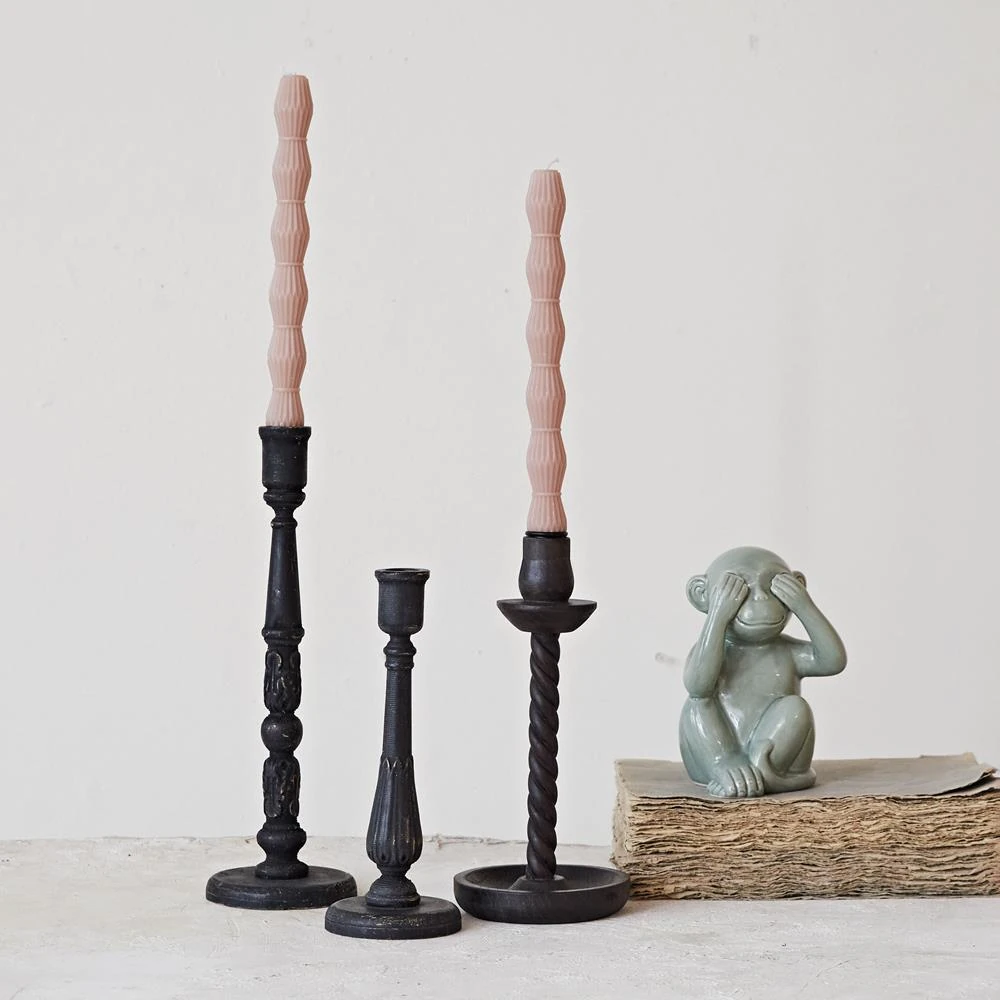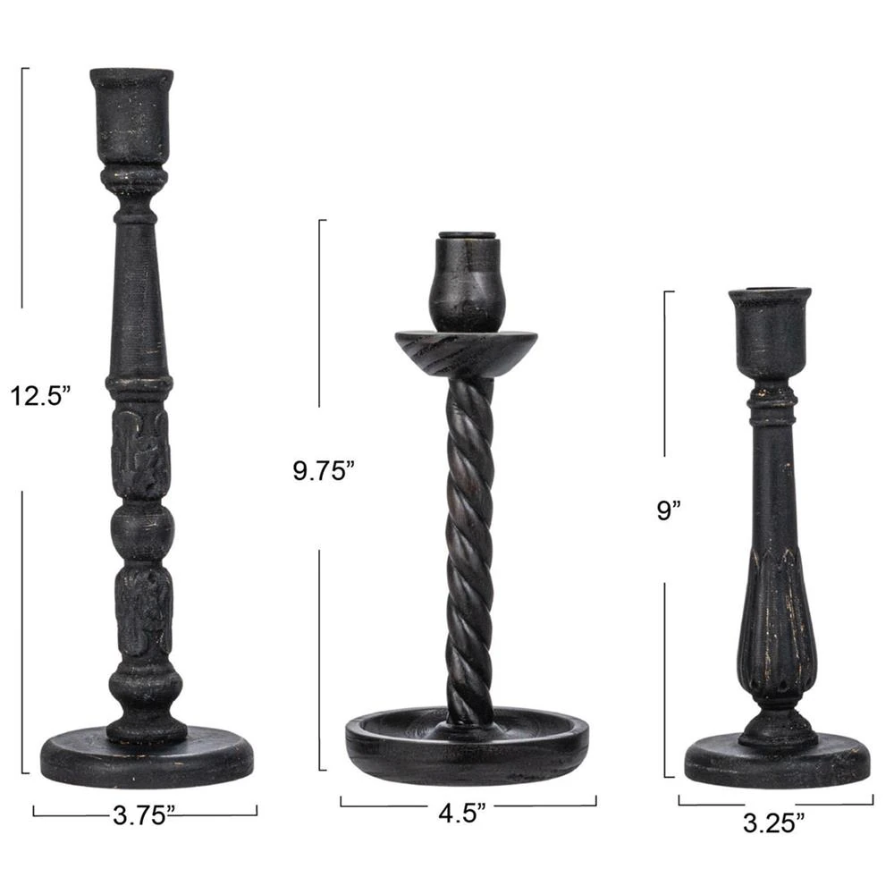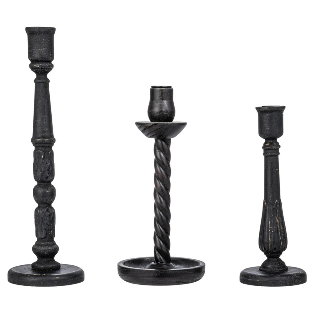 Carmen French Country Black Pine Wood Taper Candle Holder - Set of 3