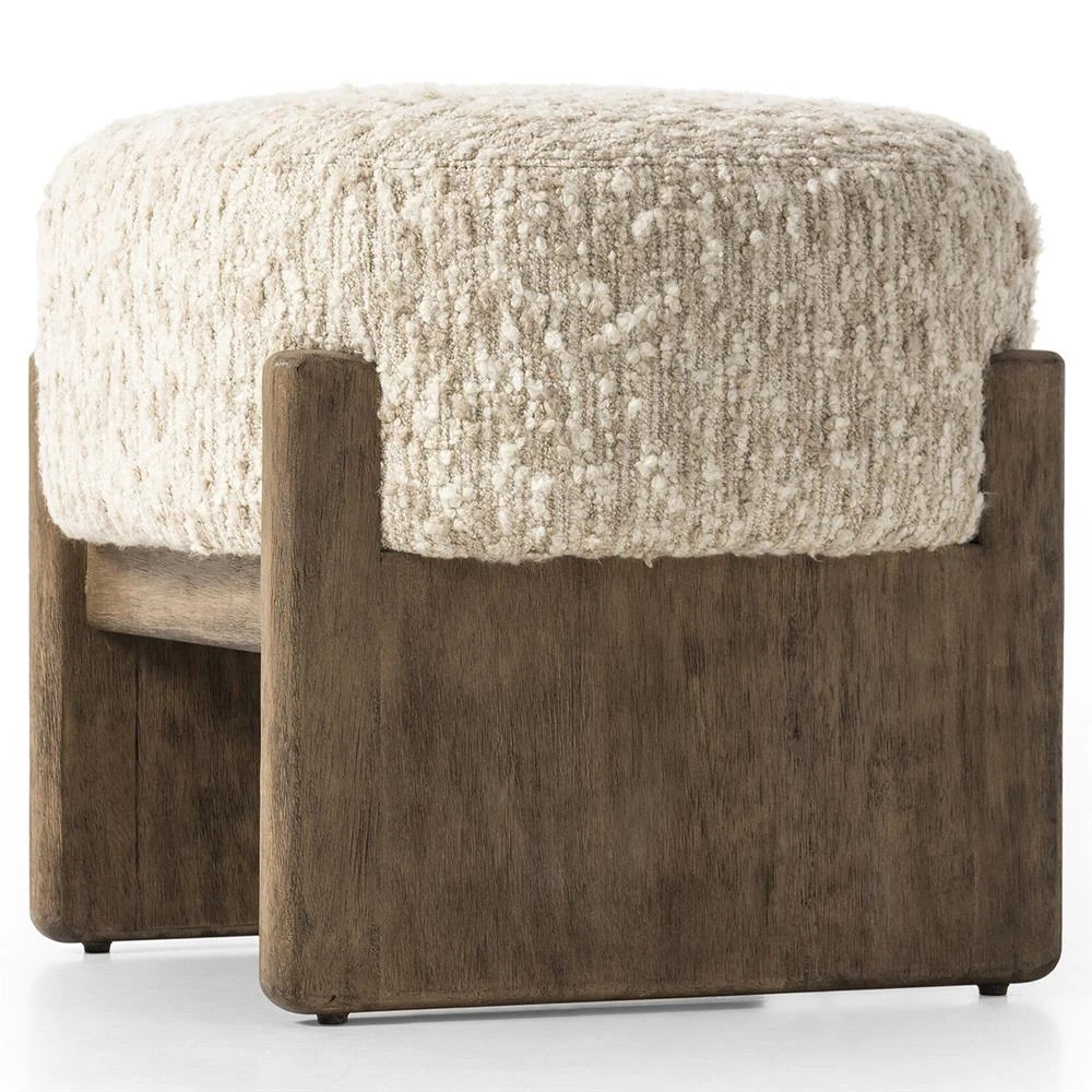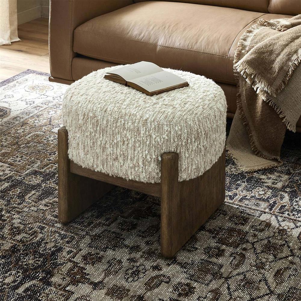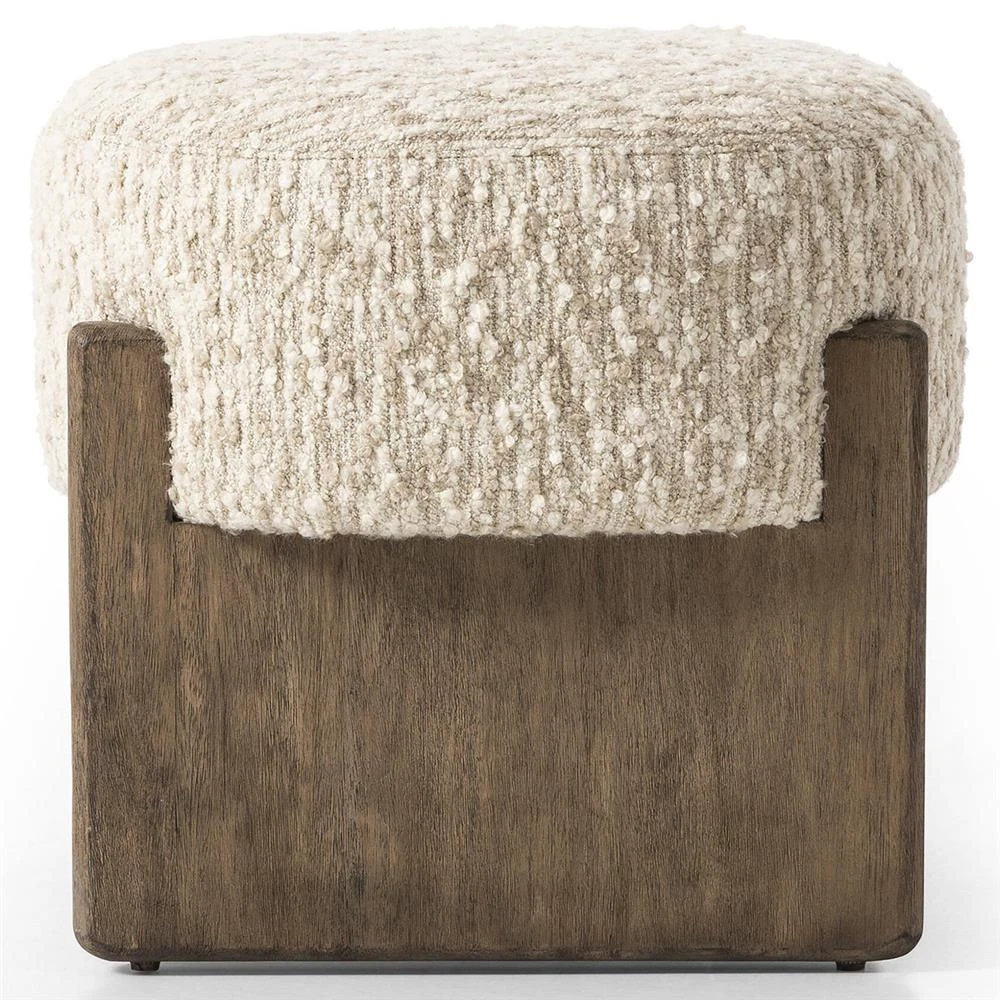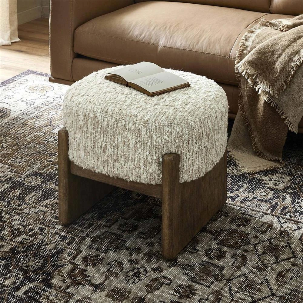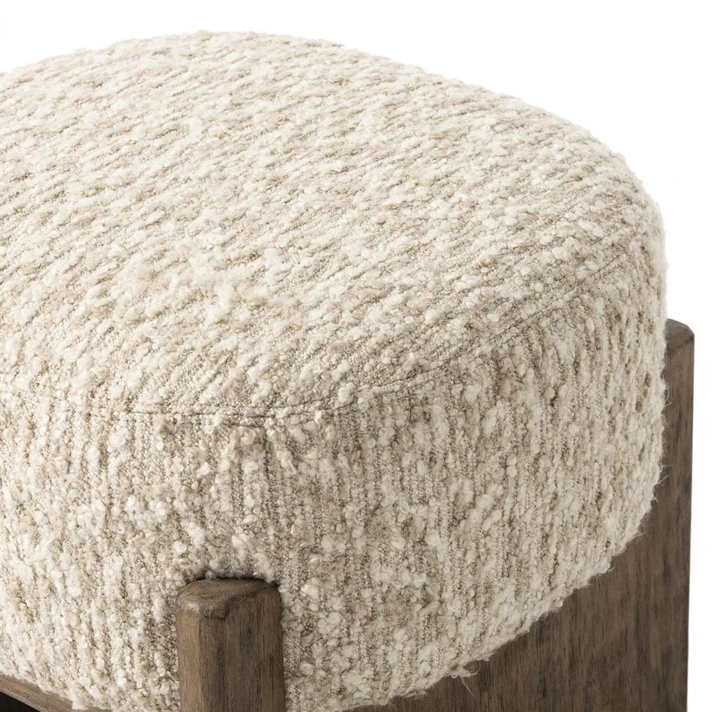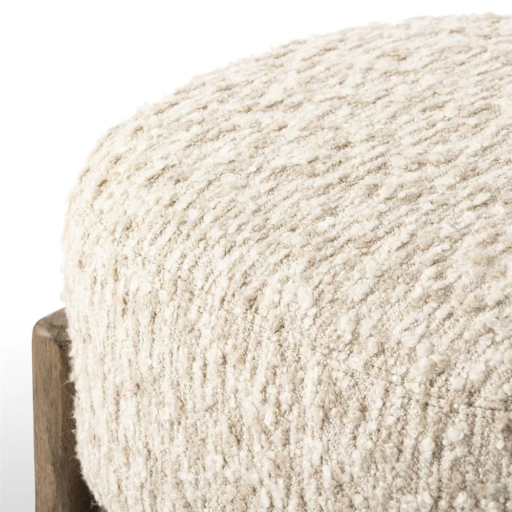 Westport Modern Round Beige Wool Upholstered Brown Wood Stool
