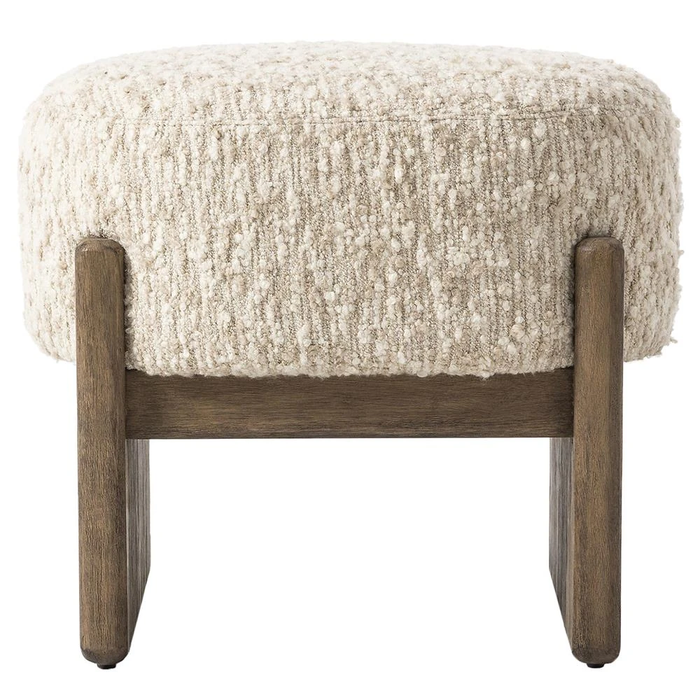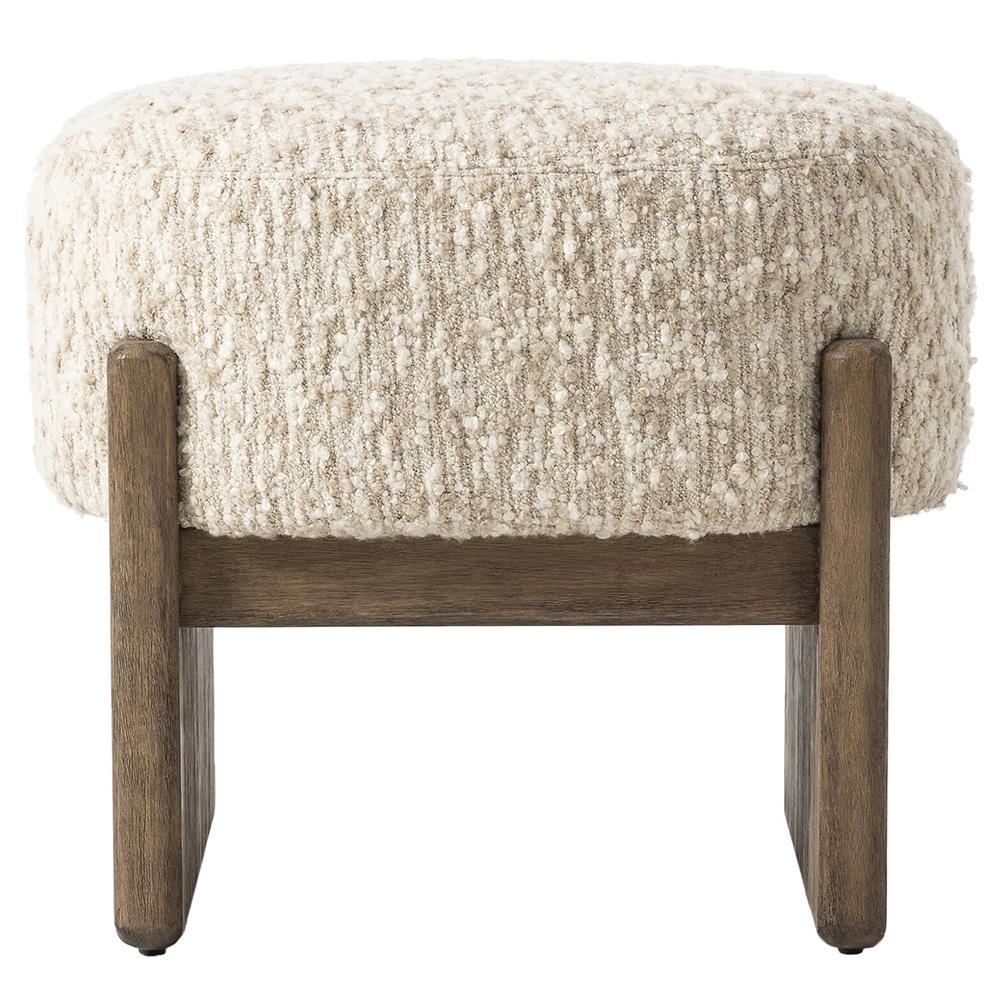 • Westport Modern Round Beige Wool Upholstered Brown Wood Stool|Kathy Kuo Home