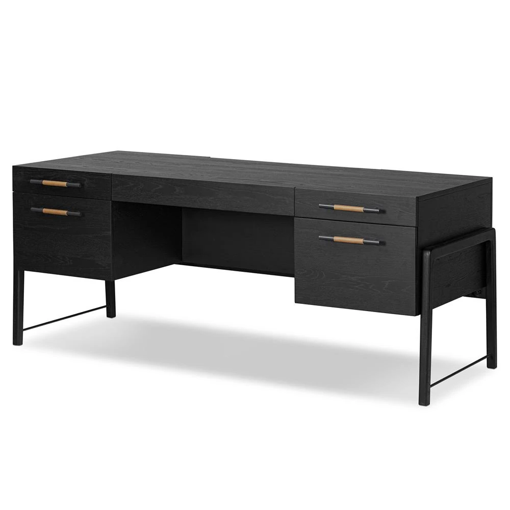 • Abner Updated Traditional Black Wood Desk|Kathy Kuo Home