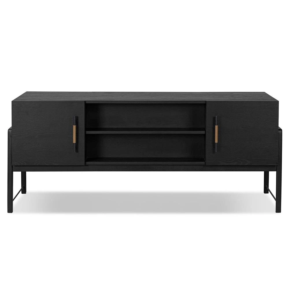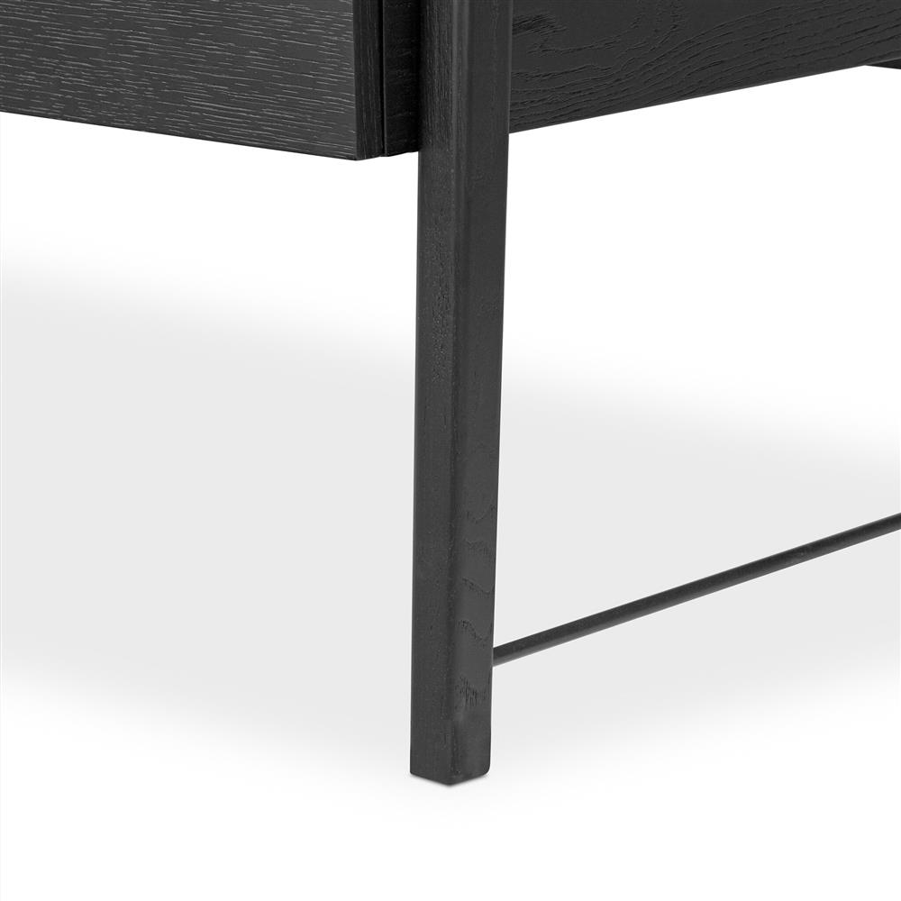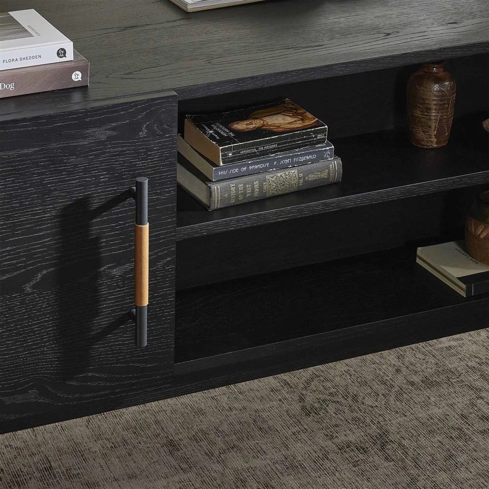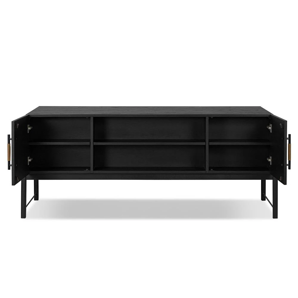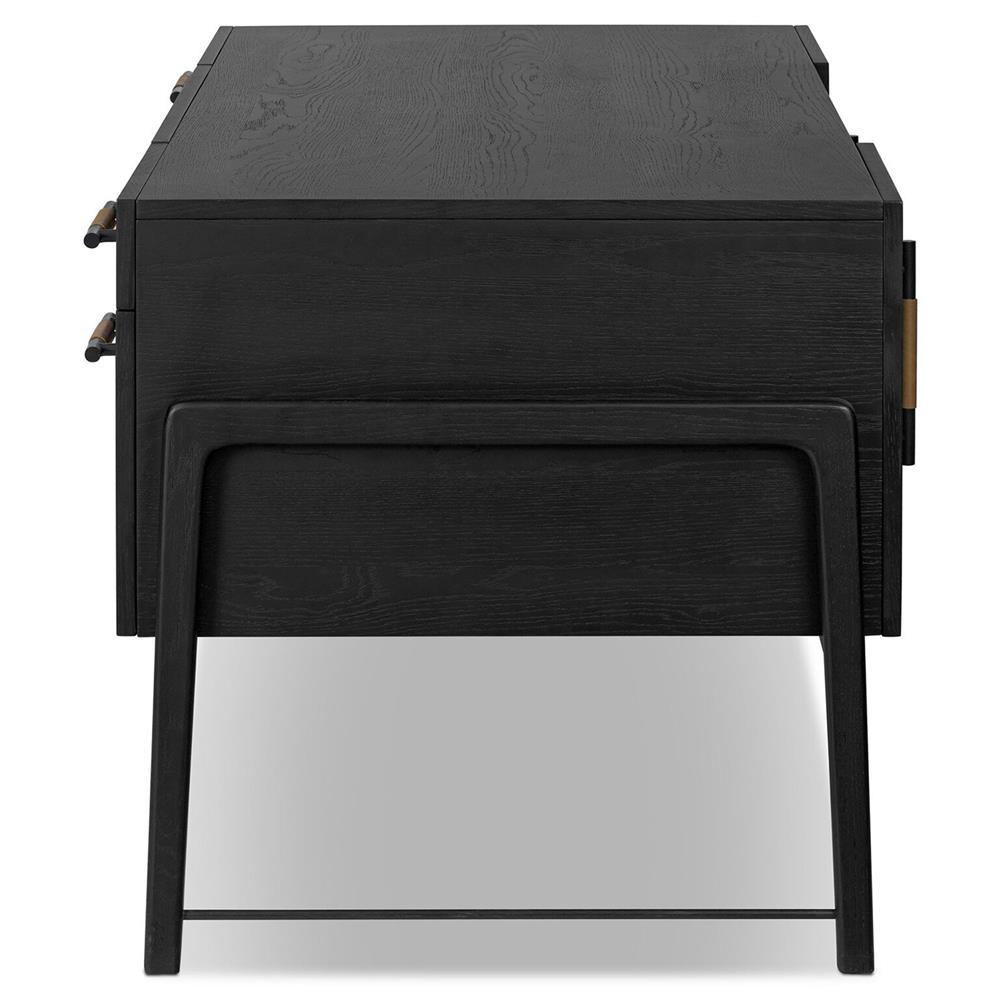 • Features 2 doors and 4 soft-closing drawers with iron hardware wrapped in tan top-grain leather