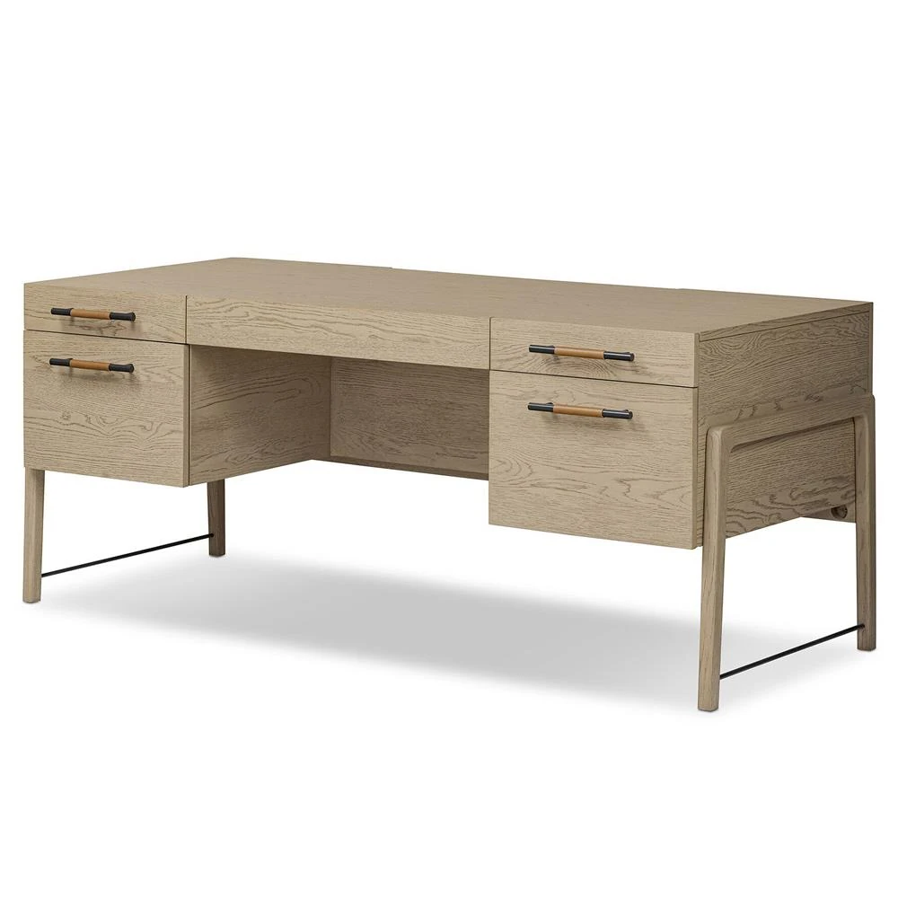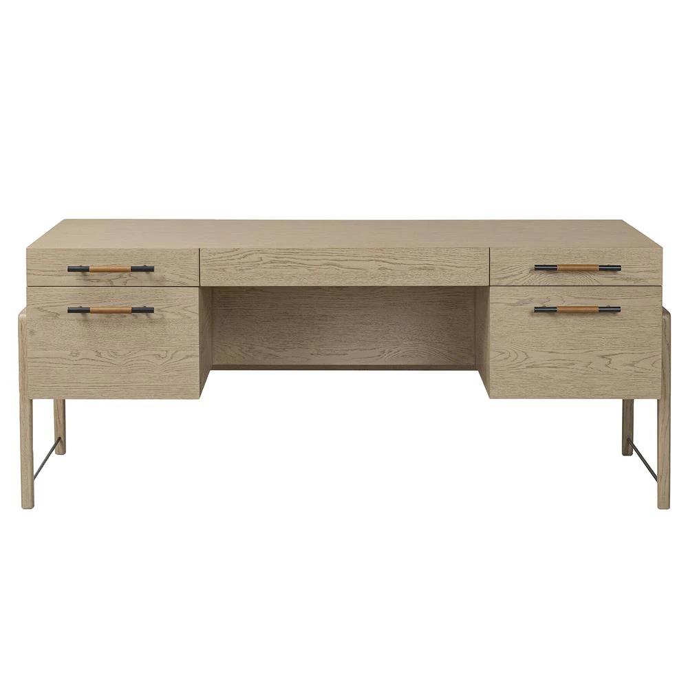 • Marlowe Updated Traditional Brown Oak Rectangular Desk|Kathy Kuo Home