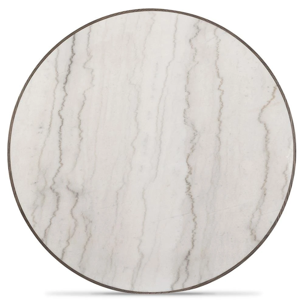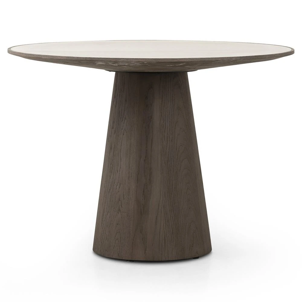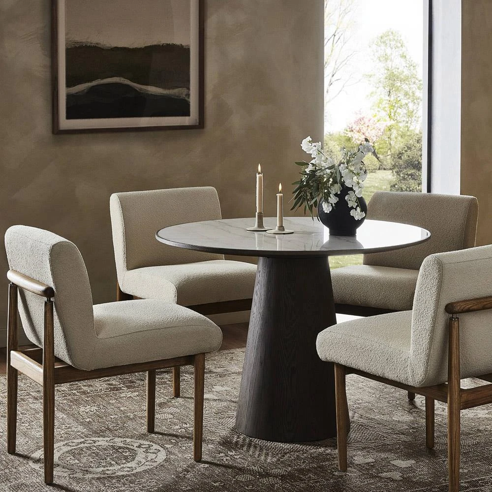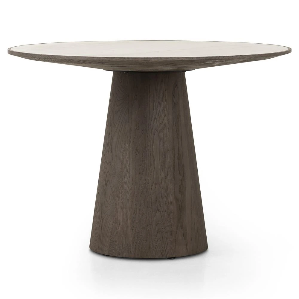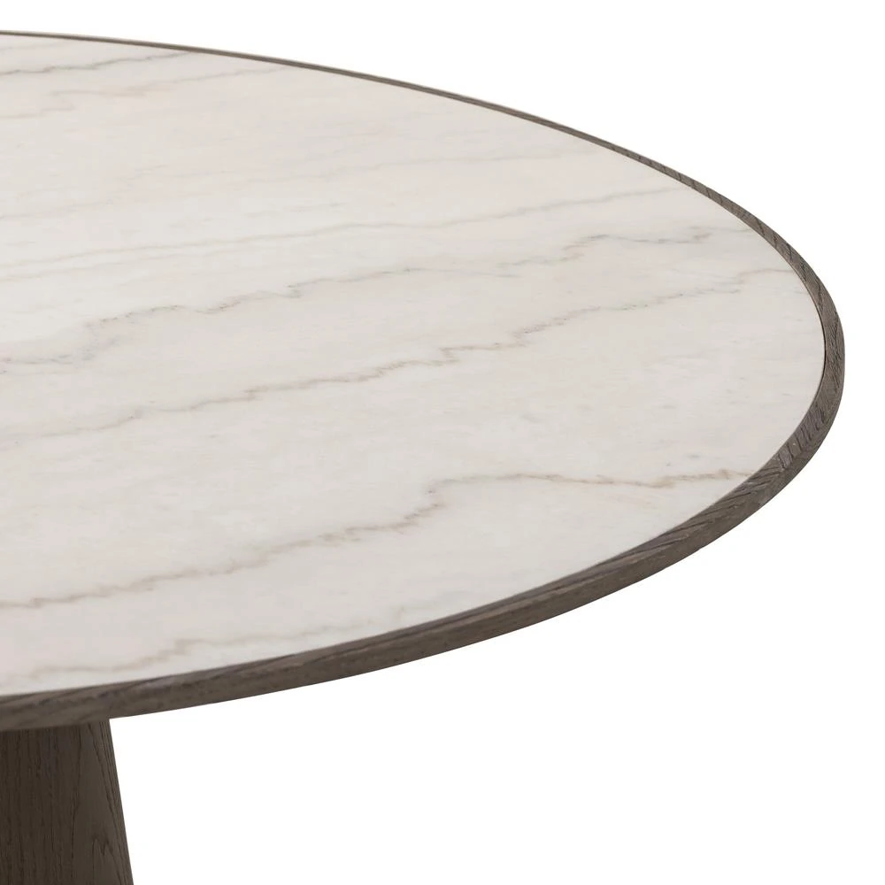 Skylar French White Marble Grey Oak Wood Round Pedestal Dining Table - 42"W