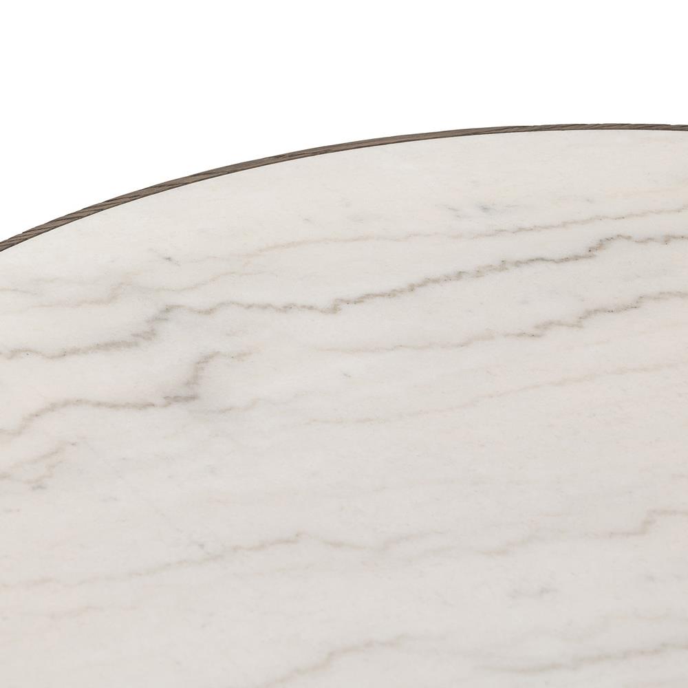 Hervey French White Marble Dark Grey Iron Pedestal Dining Table - 48"