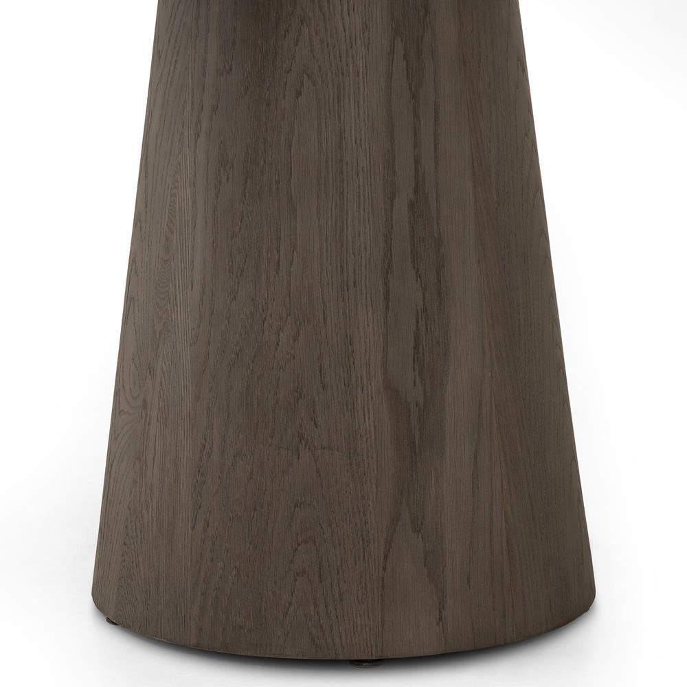 • Features a cone-tapered base that supports a rounded table top with oak banding on the edges