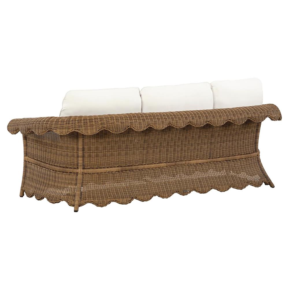 • Cielo Coastal Beige Sunbrella Brown Woven Wicker Scalloped Outdoor Sofa - 88"|Kathy Kuo Home