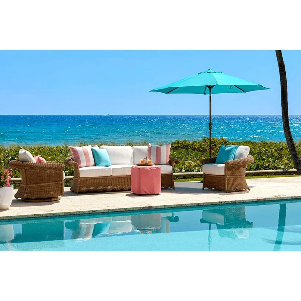 • Cielo Coastal Sand Sunbrella Woven Wicker Scalloped Outdoor Sofa - 88"|Kathy Kuo Home