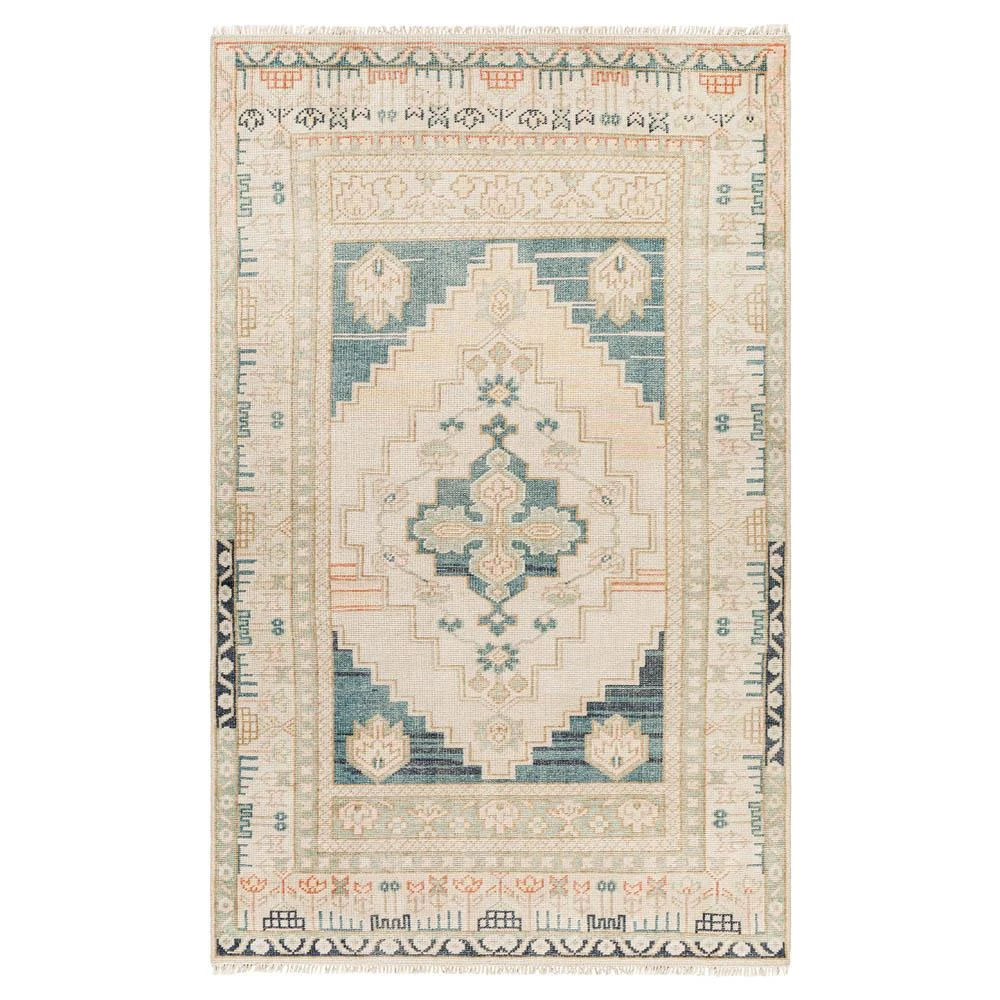 • The Met Vintage Loom Blue Oushak Patterned Rug - 4'x6'|Kathy Kuo Home