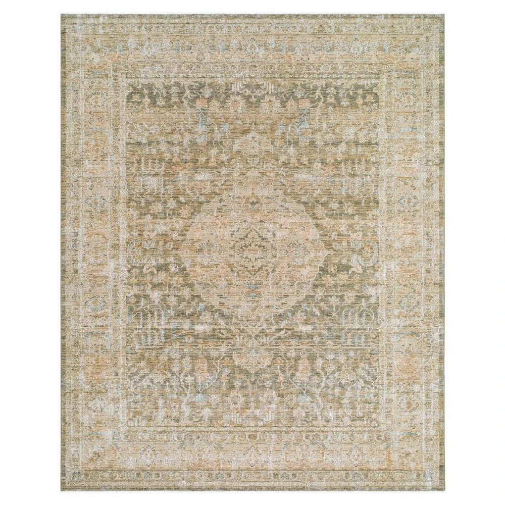 • Nerissa Updated Traditional Tan Medallion Patterned Rug - 5'6"x8'6"|Kathy Kuo Home