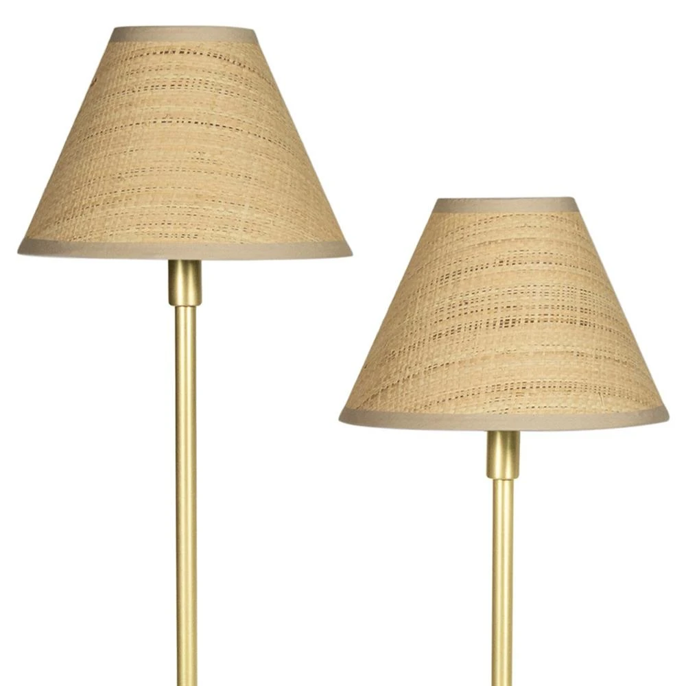 Polly Coastal Beach Rattan Shade Natural Brass Floor Lamp