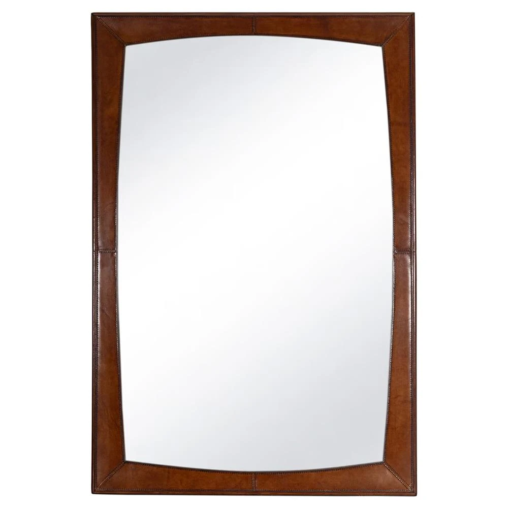 • Features rounded edges within a rectangular leather-wrapped frame