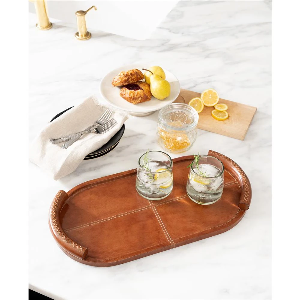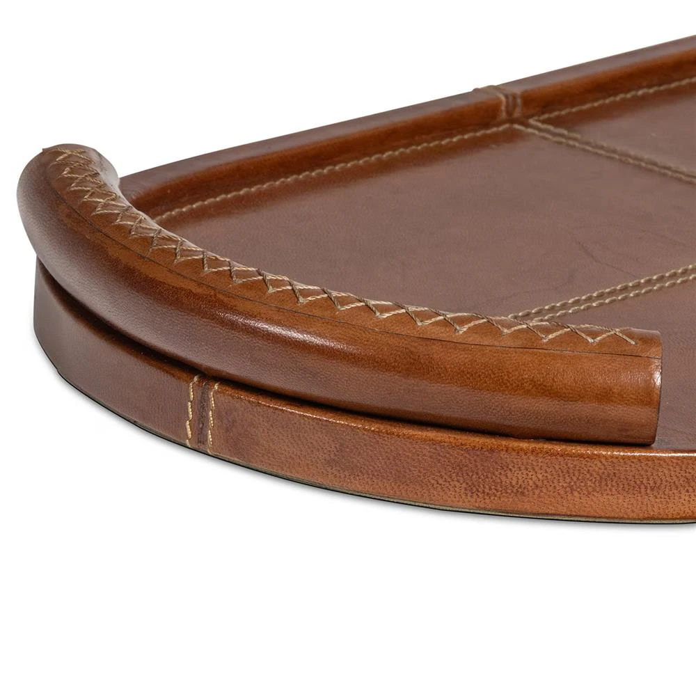 Forte Rustic Lodge Tan Leather Oval Decorative Tray
