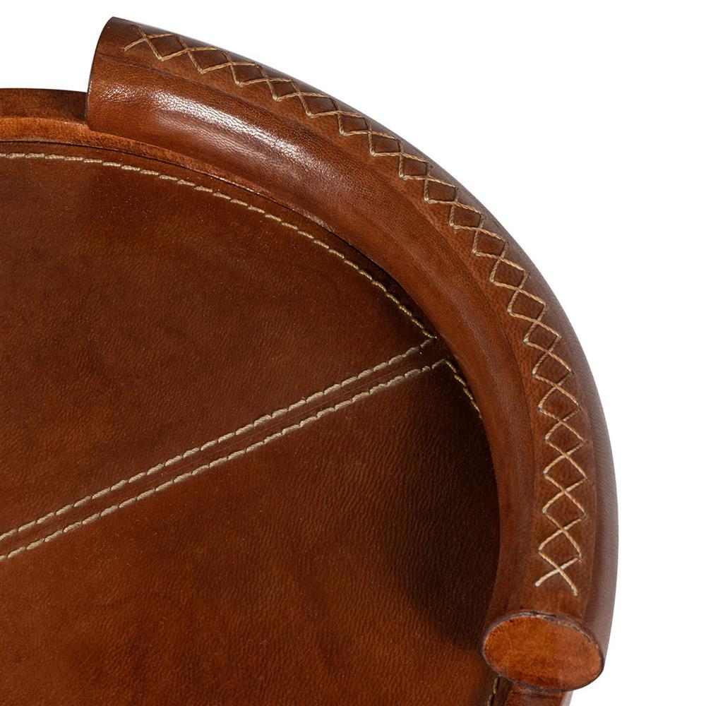 • Forte Rustic Lodge Tan Leather Round Decorative Tray - Small|Kathy Kuo Home