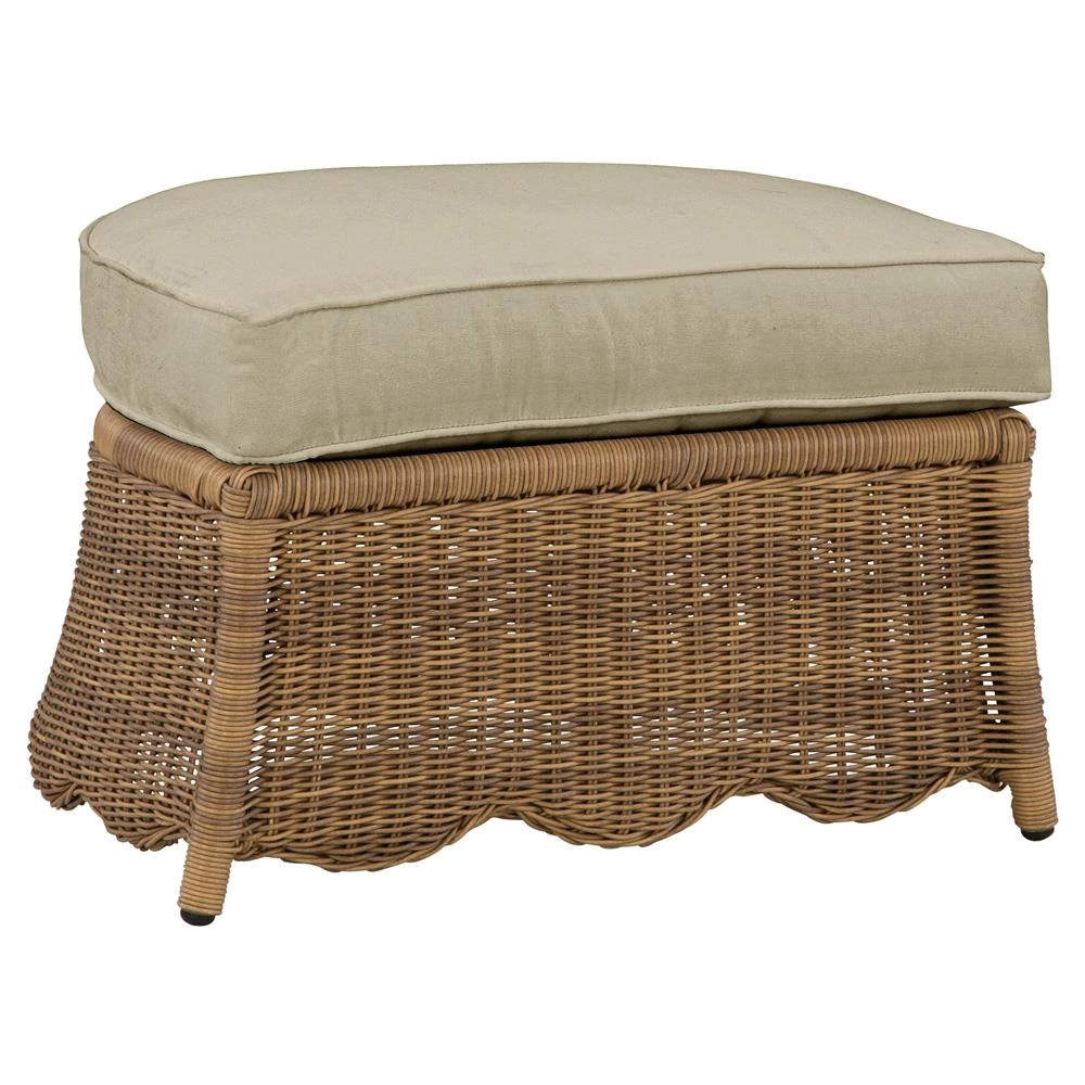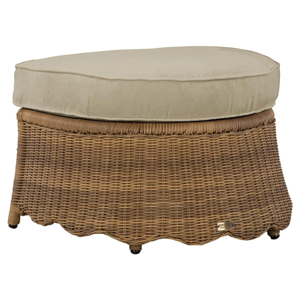 Airah Coastal Beach Beige Rounded Woven Wicker Outdoor Ottoman