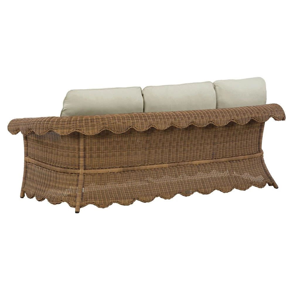 • Cielo Coastal Sand Sunbrella Woven Wicker Scalloped Outdoor Sofa - 88"|Kathy Kuo Home