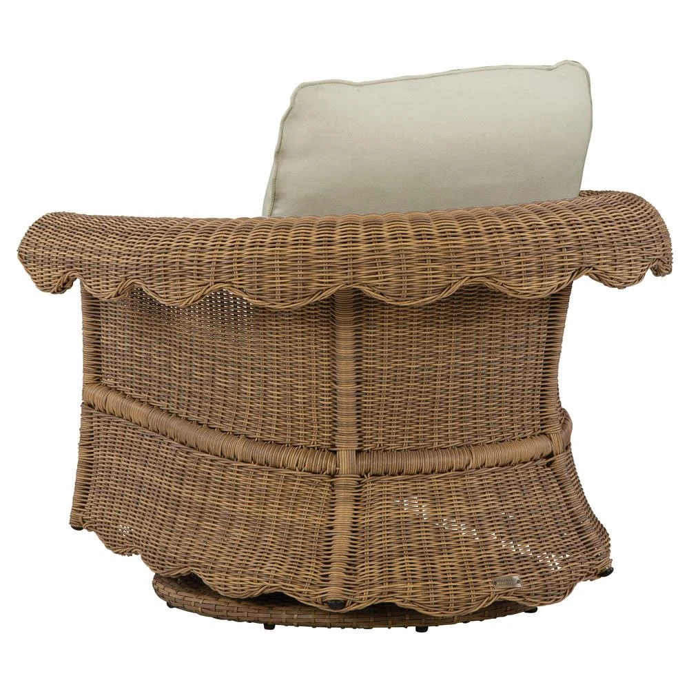 • Cielo Coastal White Sunbrella Brown Wicker Scalloped Outdoor Swivel Glider Chair|Kathy Kuo Home