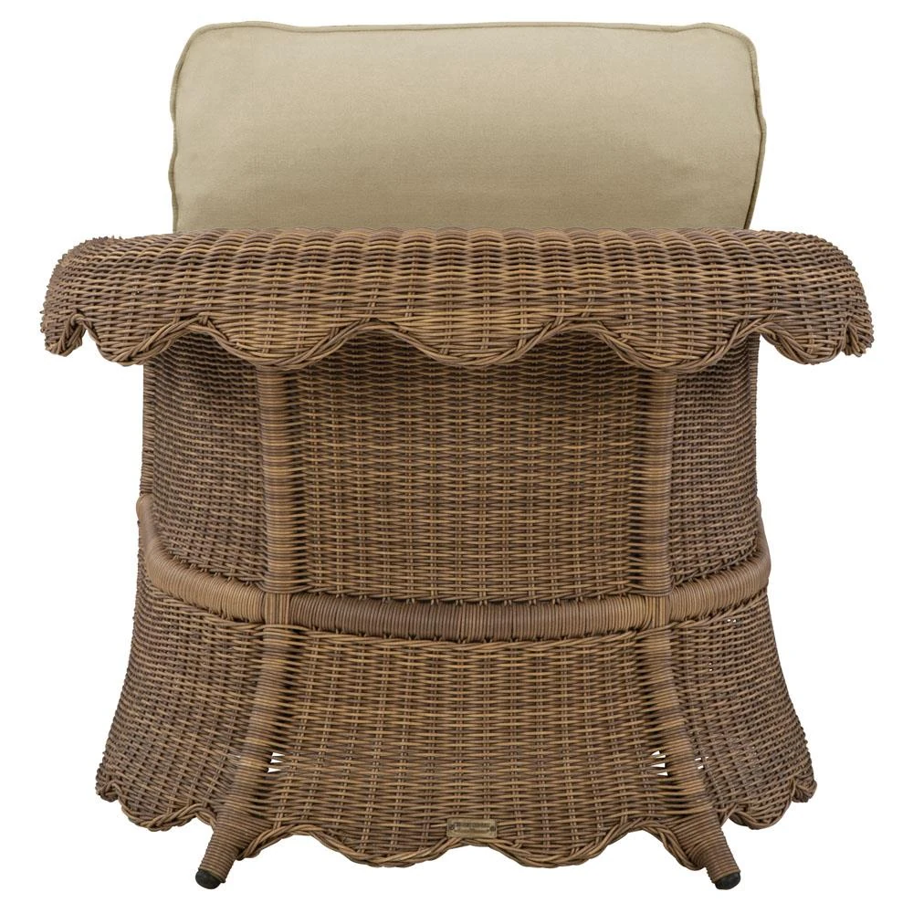 • Cielo Coastal Beige Sunbrella Brown Woven Wicker Scalloped Outdoor Lounge Chair|Kathy Kuo Home