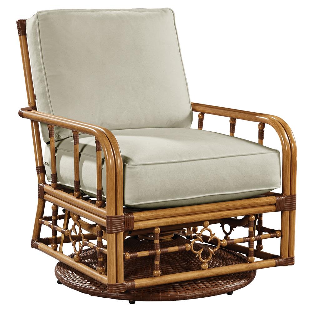 • Myrah Coastal Beach Brown Aluminum White Upholstered Outdoor Swivel Chair|Kathy Kuo Home