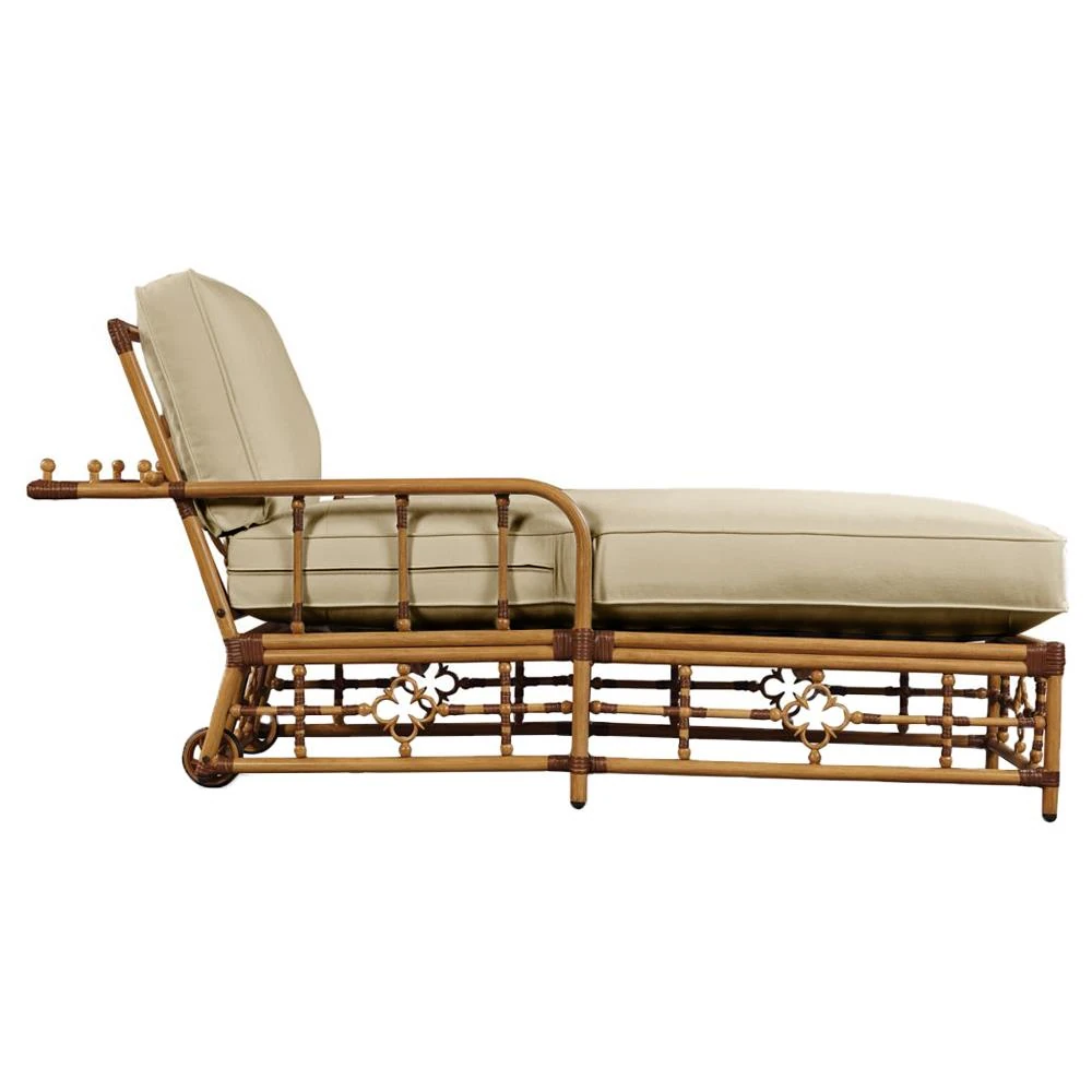 • Myrah Coastal Beige Sunbrella Brown Aluminum Adjustable Outdoor Chaise Lounge|Kathy Kuo Home