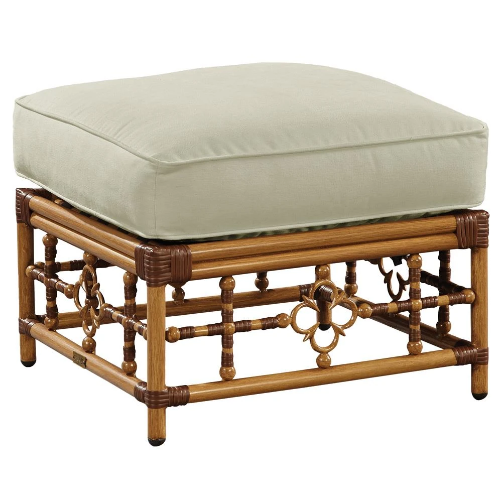 • Myrah Coastal Beach Brown Aluminum White Upholstered Outdoor Square Ottoman|Kathy Kuo Home