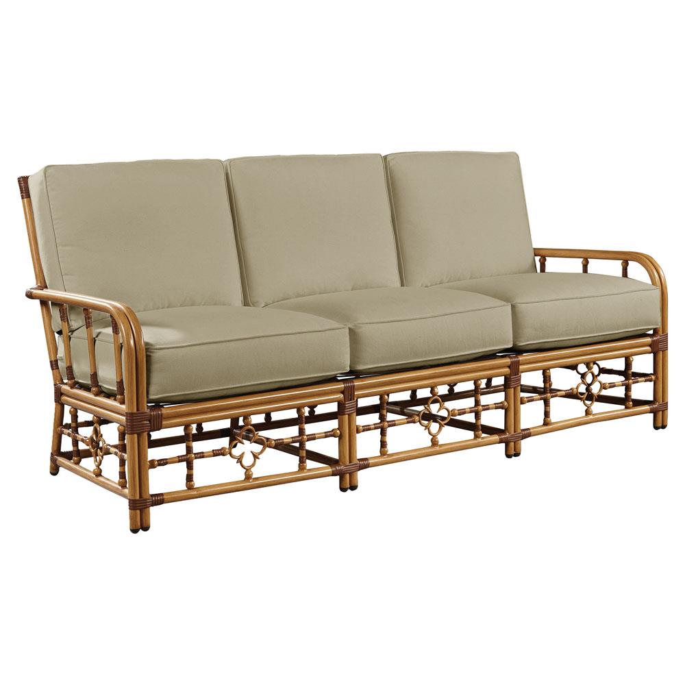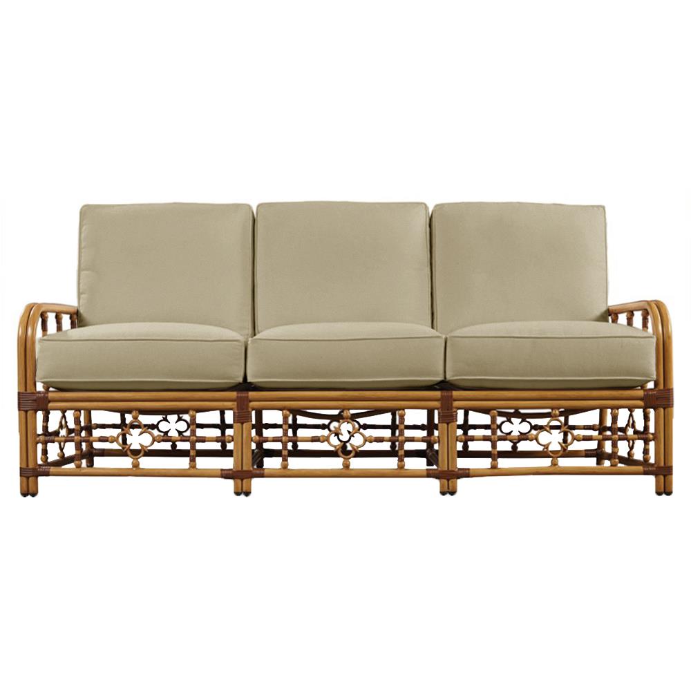 • Myrah Coastal Beach Beige Sunbrella Brown Aluminum Outdoor Sofa - 78"|Kathy Kuo Home
