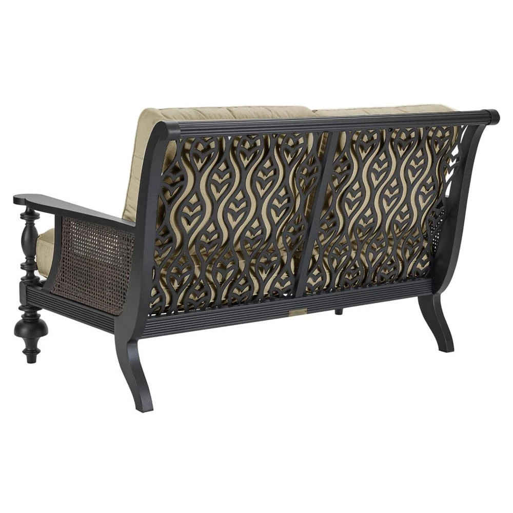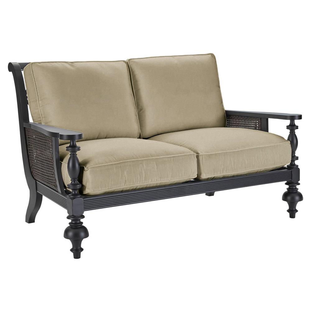 Hermine French Country Sand Sunbrella Black Aluminum Outdoor Loveseat - 60"