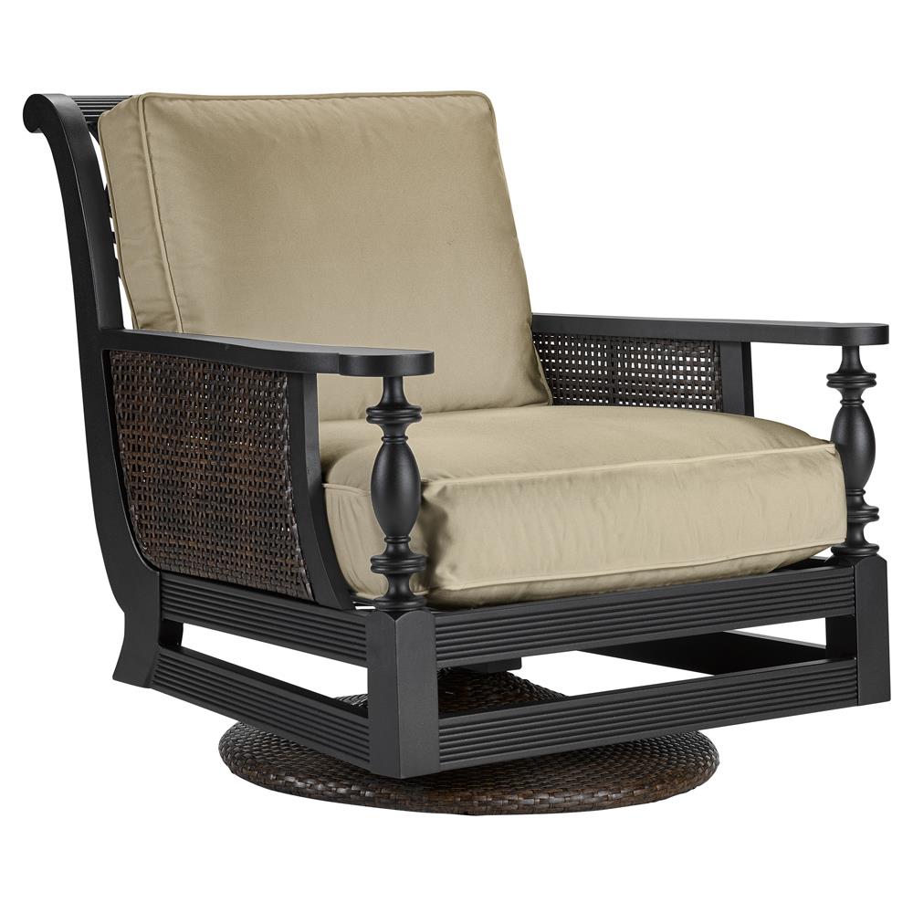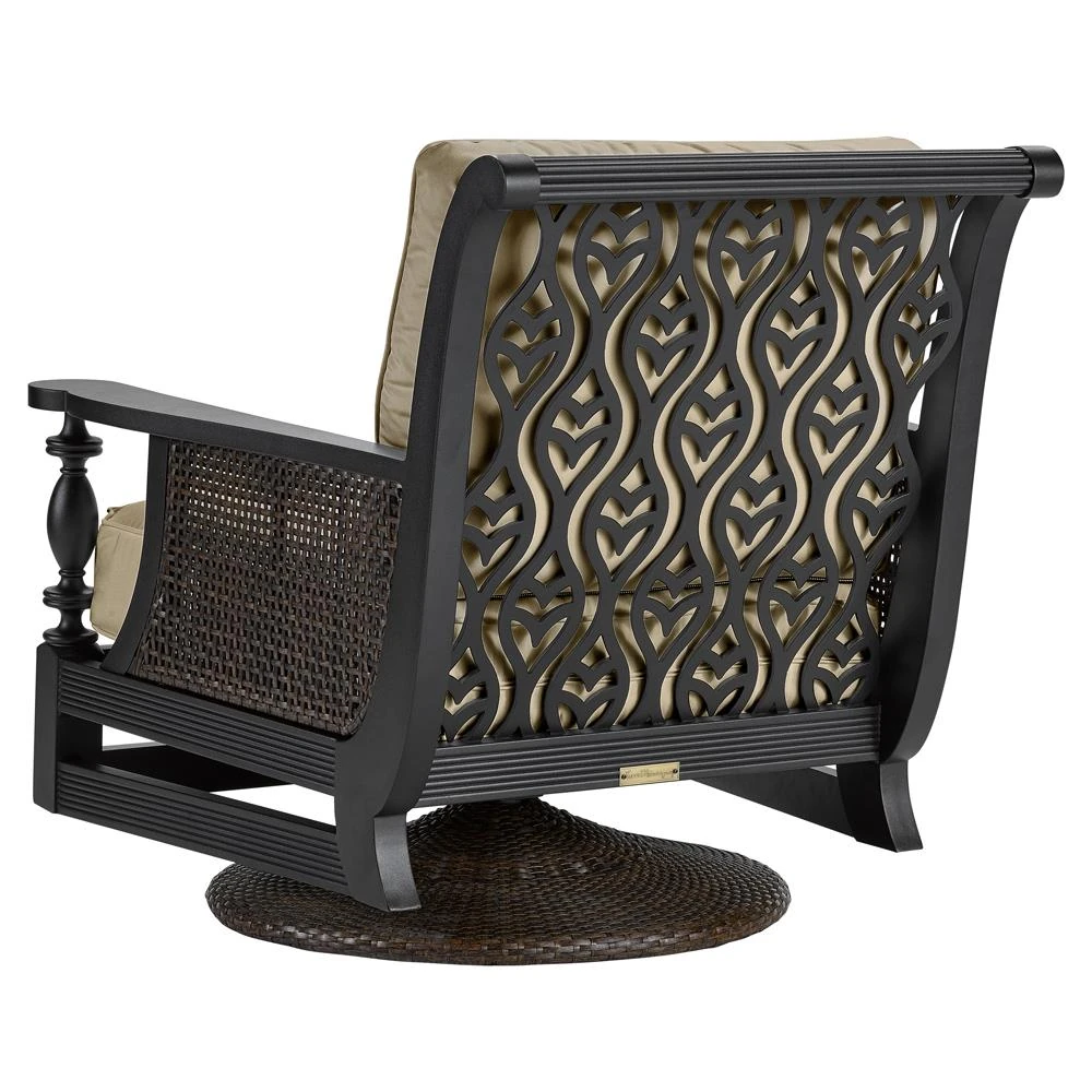 Hermine French Country Sand Sunbrella Black Aluminum Outdoor Swivel Chair