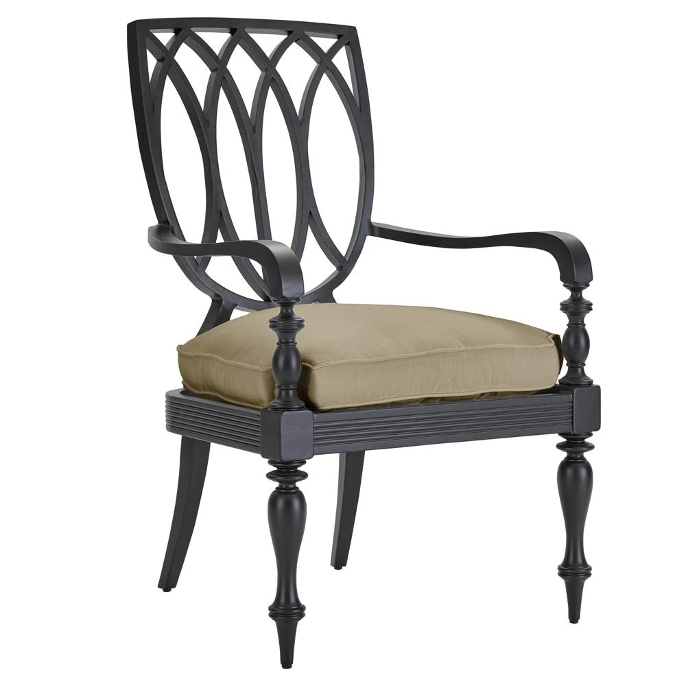 Hermine French Sand Sunbrella Black Aluminum Outdoor Dining Arm Chair