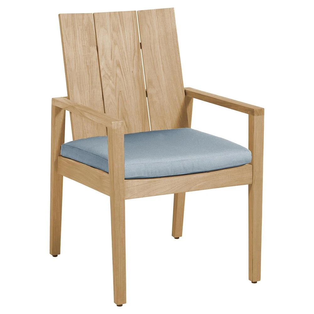 Blue Sunbrella Ashland Natural Teak Outdoor Dining Arm Chair