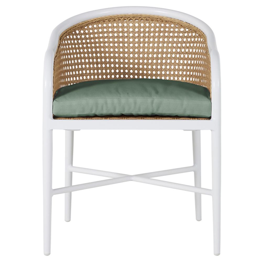 Havana Green Sunbrella White Aluminum Outdoor Dining Arm Chair