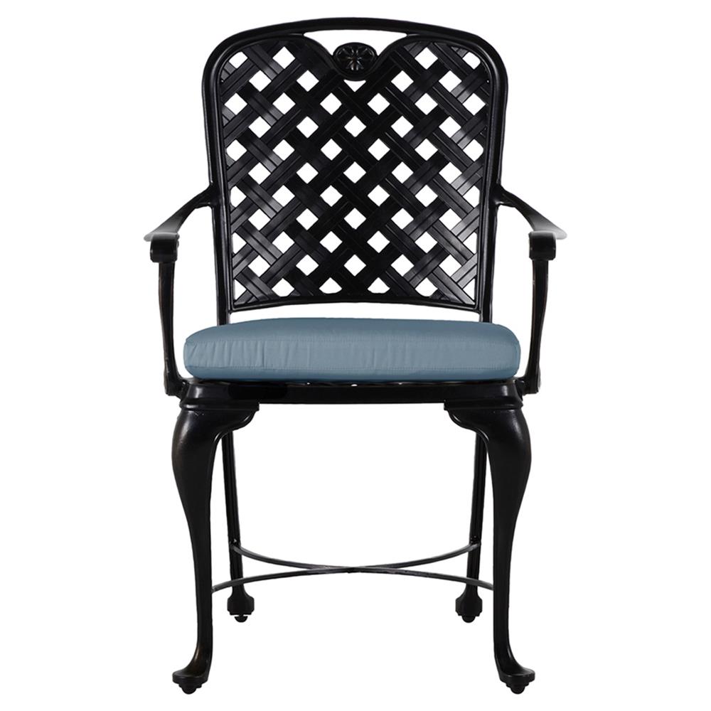 Provance Blue Sunbrella Earth Black Outdoor Dining Arm Chair