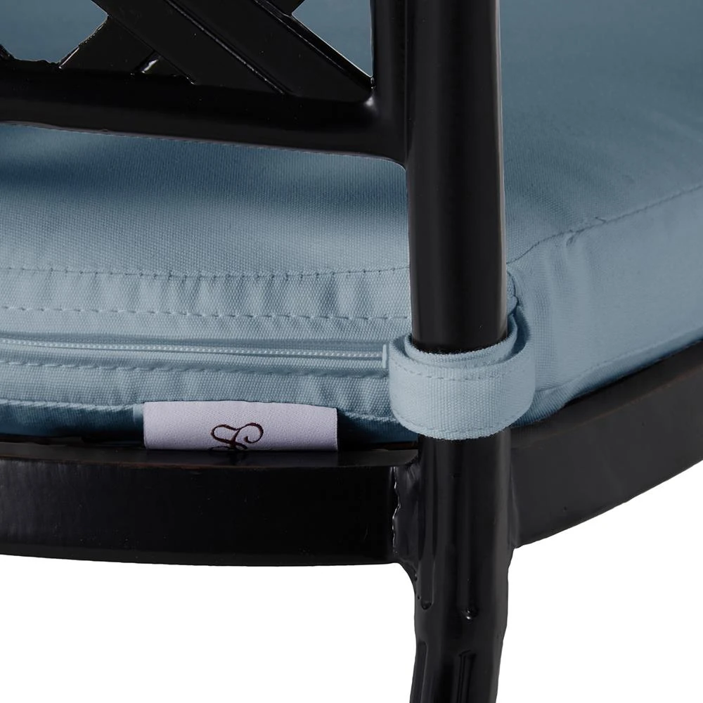 • Includes a non-welted blue Sunbrella-? seat cushion (Fabric: Arbor Chambray. Fabric content: 100% Sunbrella-? acrylic)