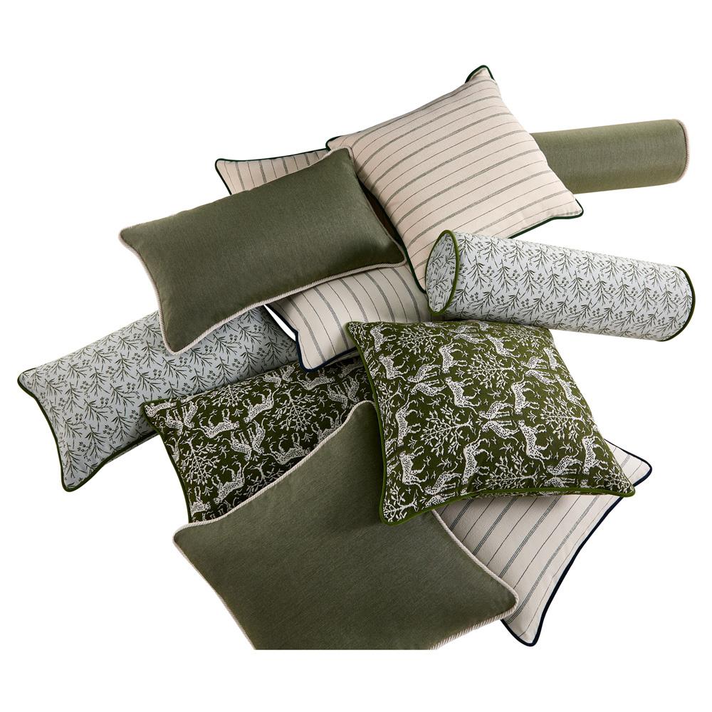• Franca French Green Striped Indoor Outdoor Lumbar Pillow - 12x20|Kathy Kuo Home