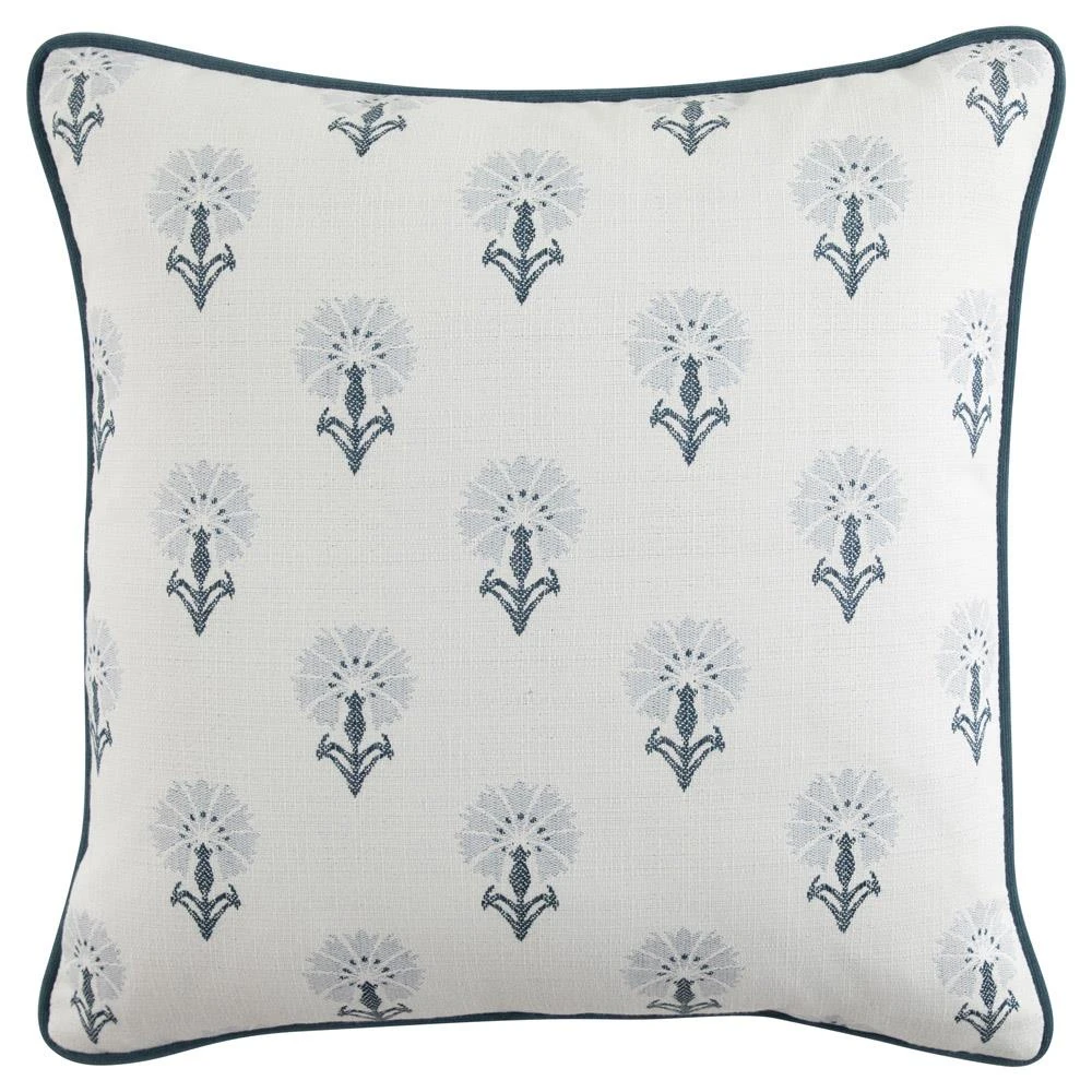 Flora Coastal Blue Botanical Indoor Outdoor Throw Pillow - 22x22