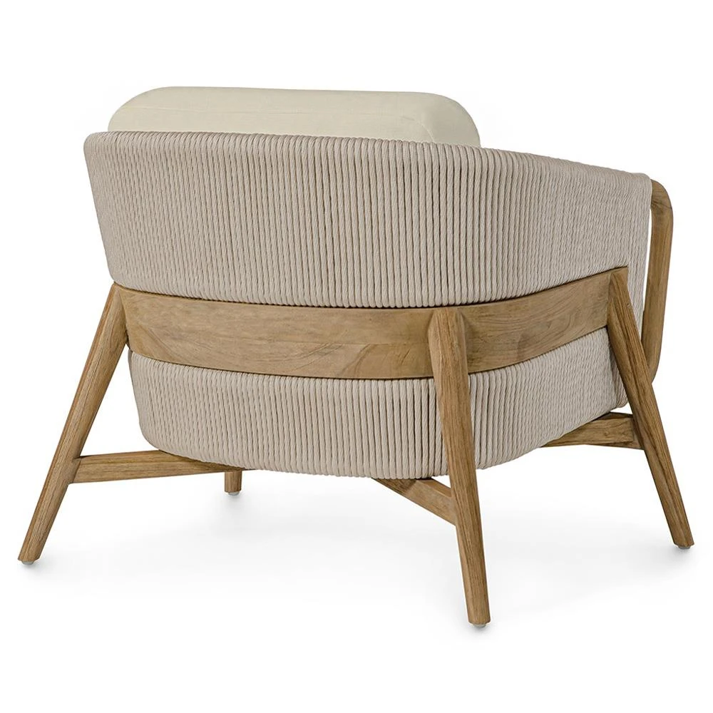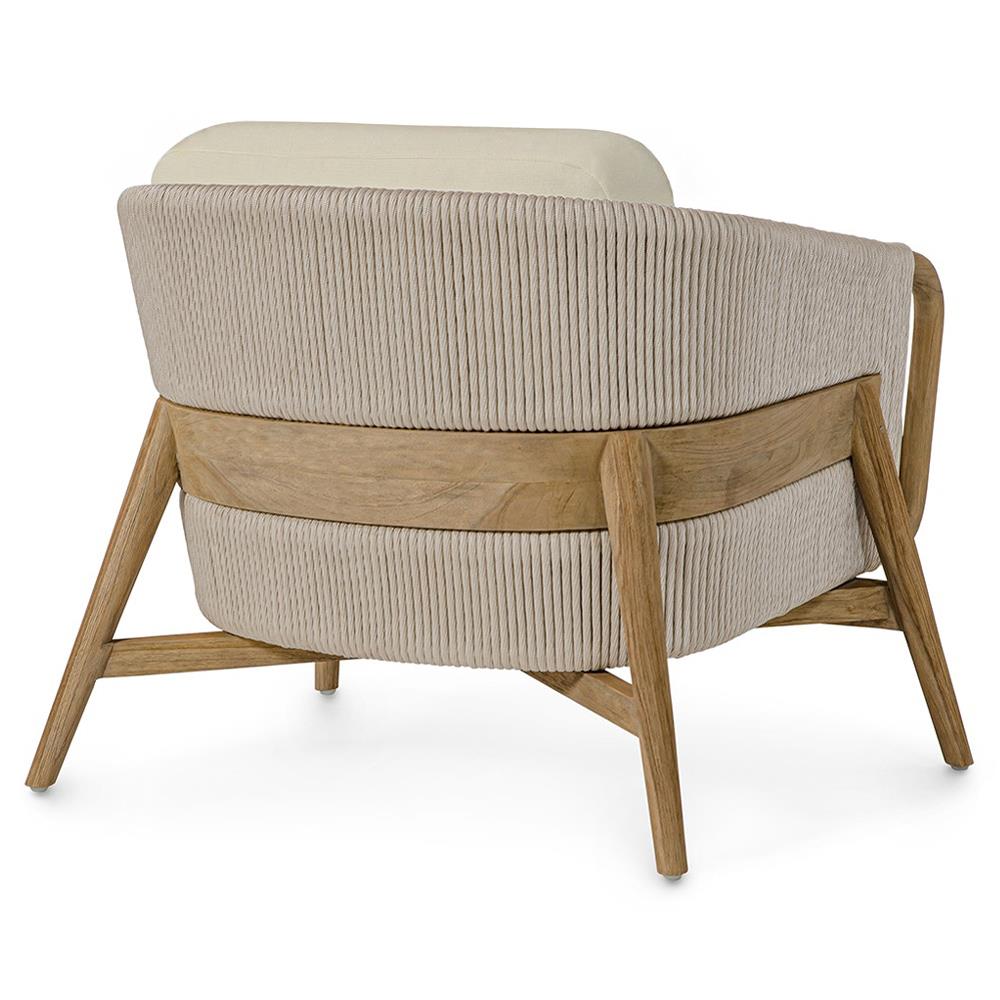Palecek Casey Mid Century Beige Upholstered Taupe Rope Natural Teak Outdoor Lounge Chair