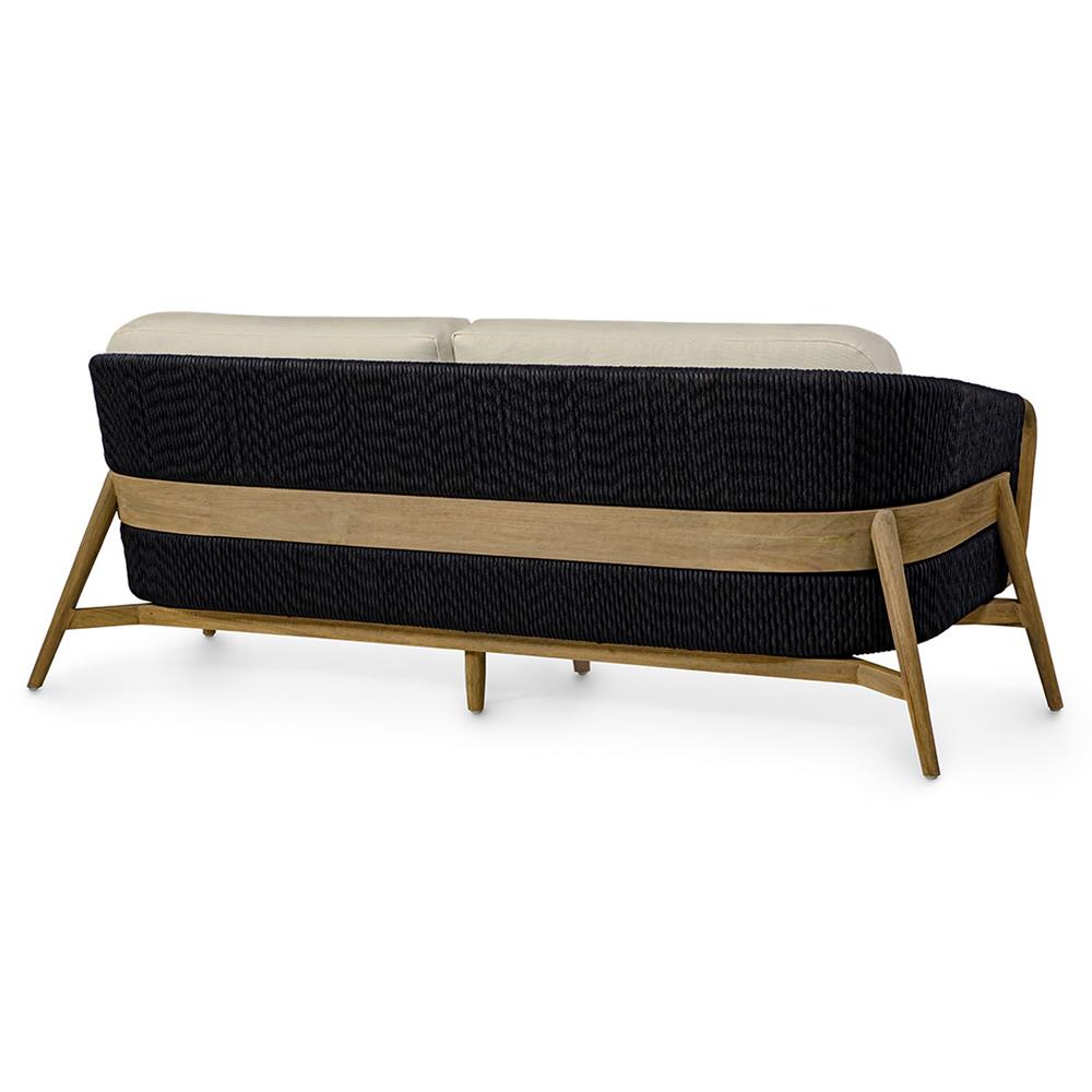 Palecek Casey Mid Century Beige Upholstered Black Rope Natural Teak Outdoor Sofa - 83"