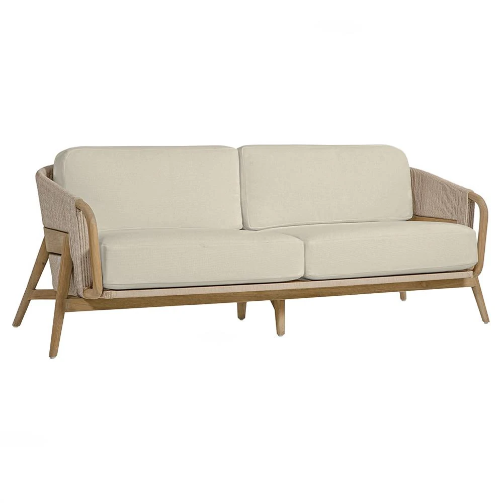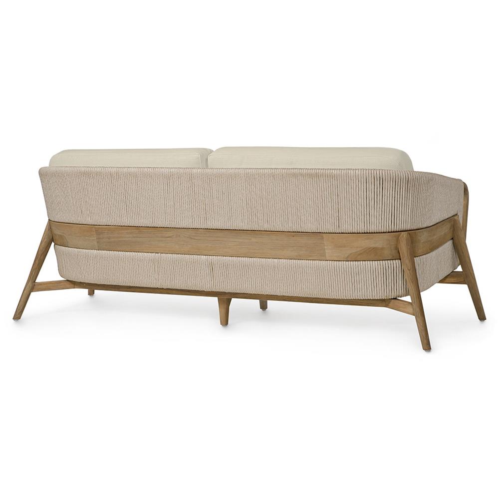 Palecek Casey Mid Century Beige Upholstered Taupe Rope Natural Teak Outdoor Sofa - 83"