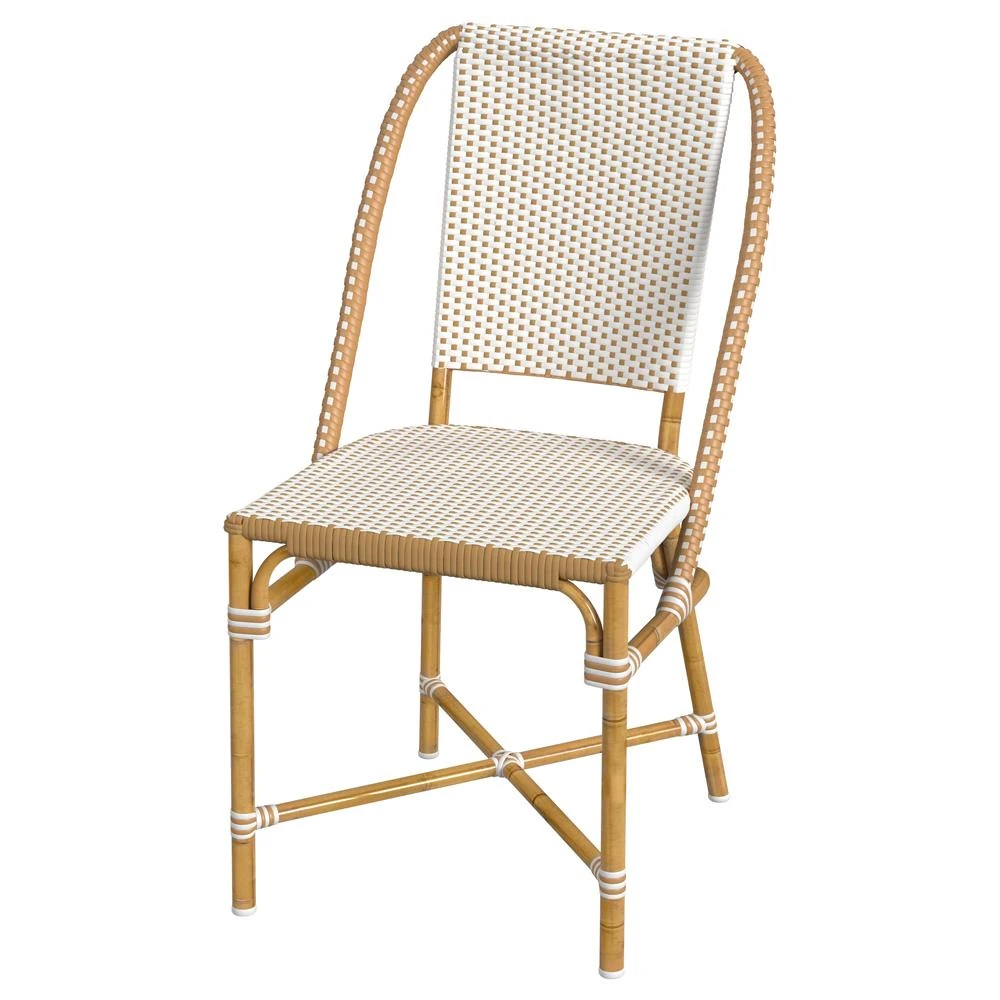 Lily French Country Beige Woven Rattan Outdoor Bistro Dining Chair