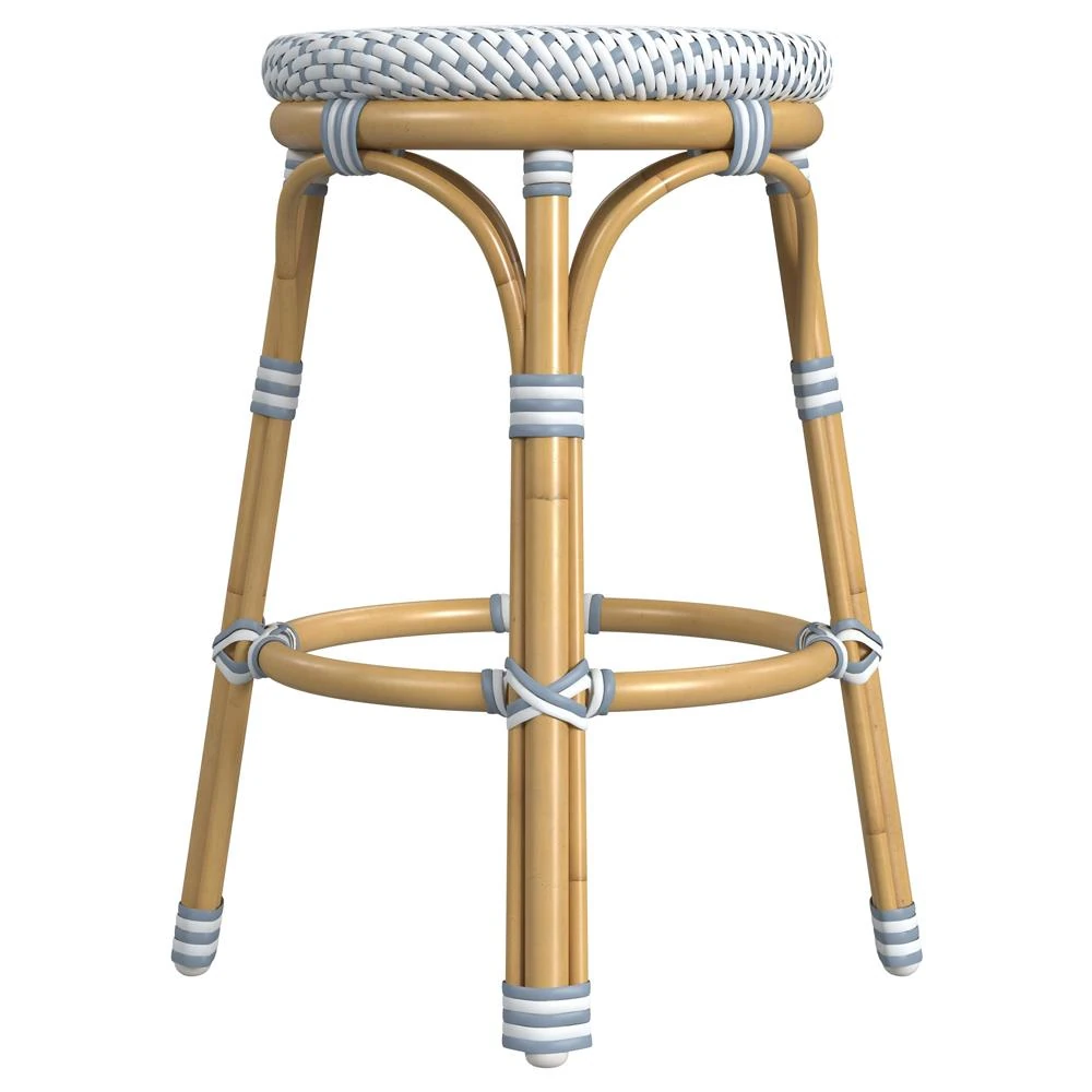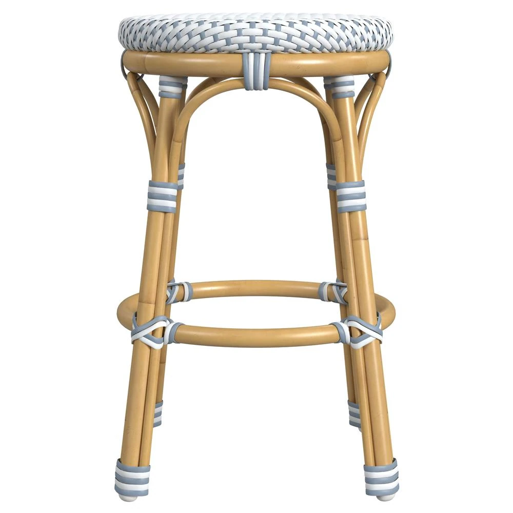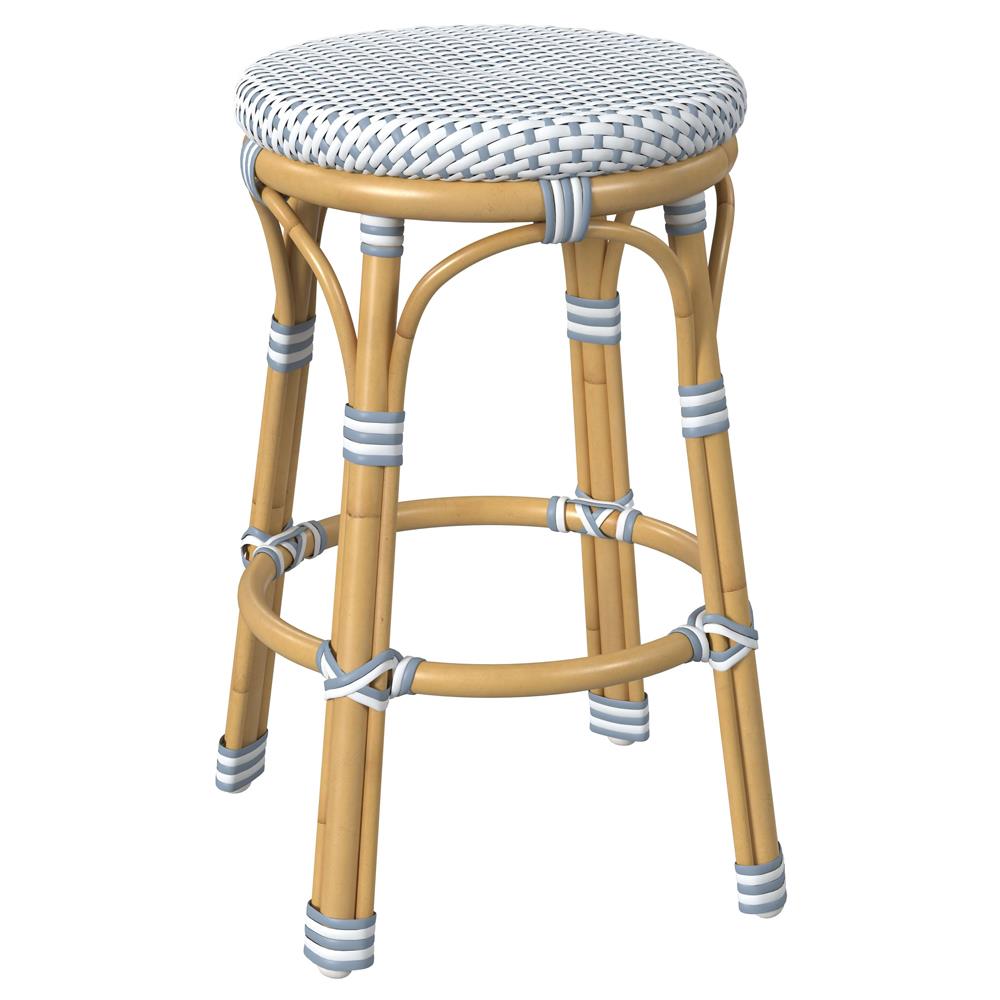 Lily French Country Blue Woven Rattan Outdoor Backless Counter Stool