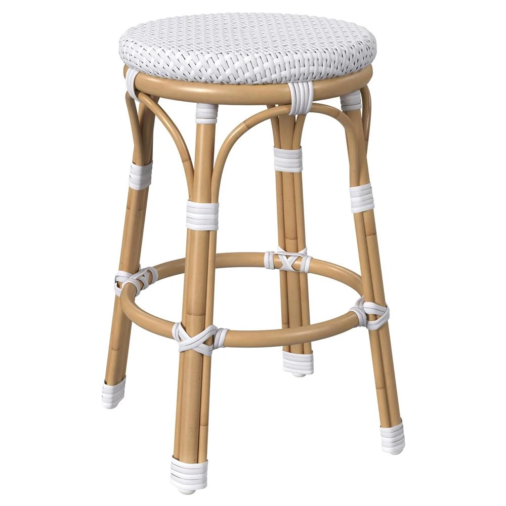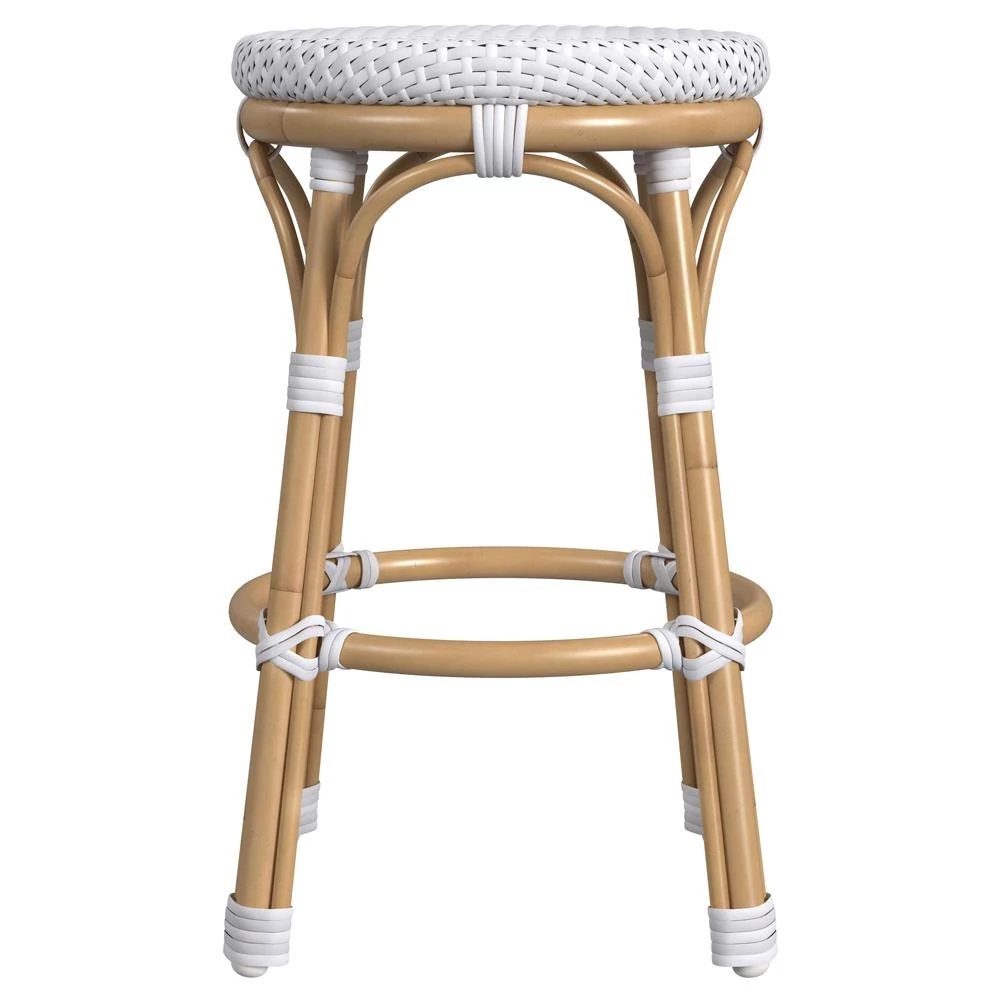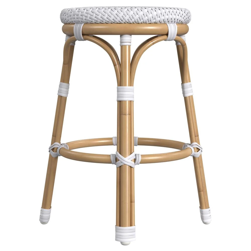 Lily French Country White Woven Rattan Outdoor Backless Counter Stool
