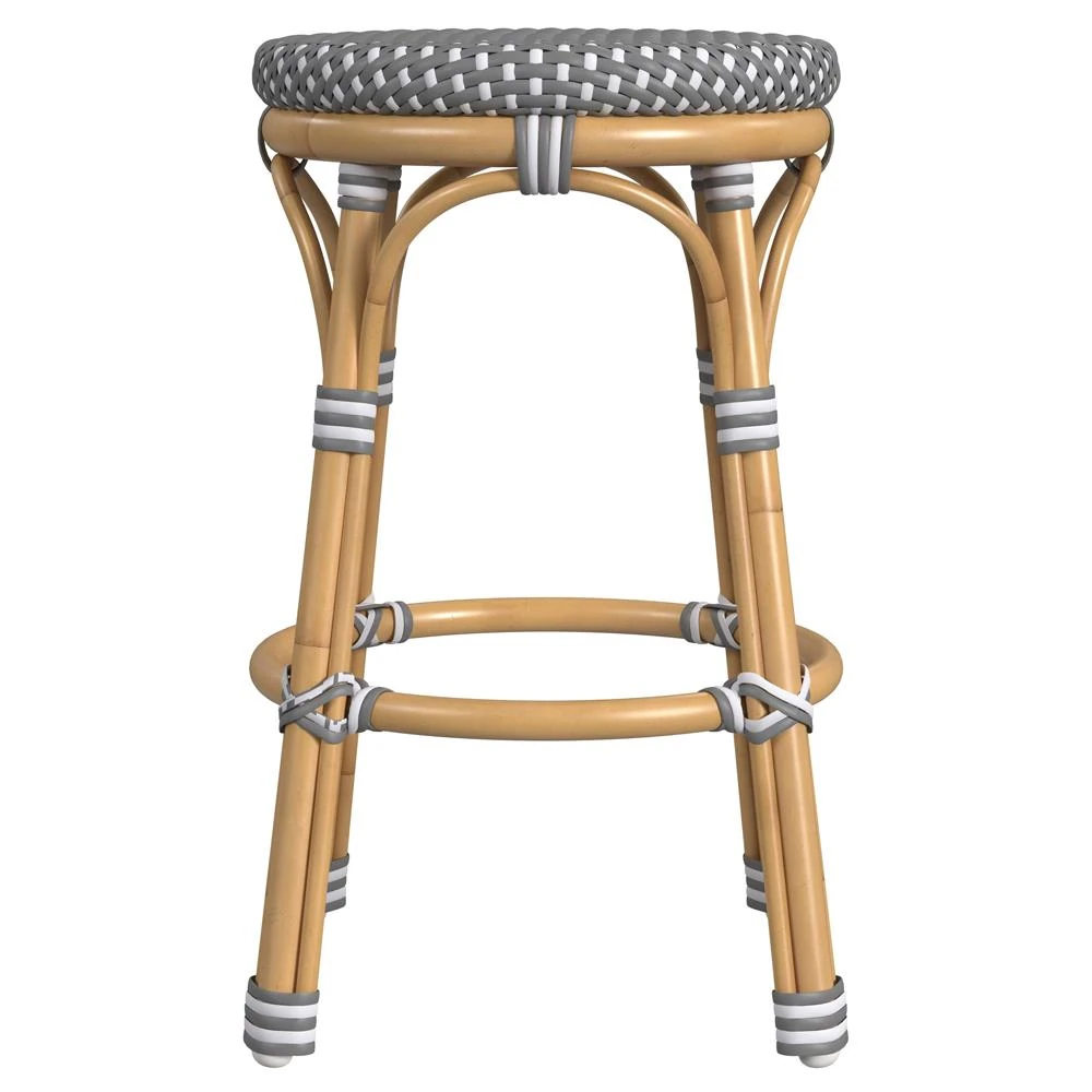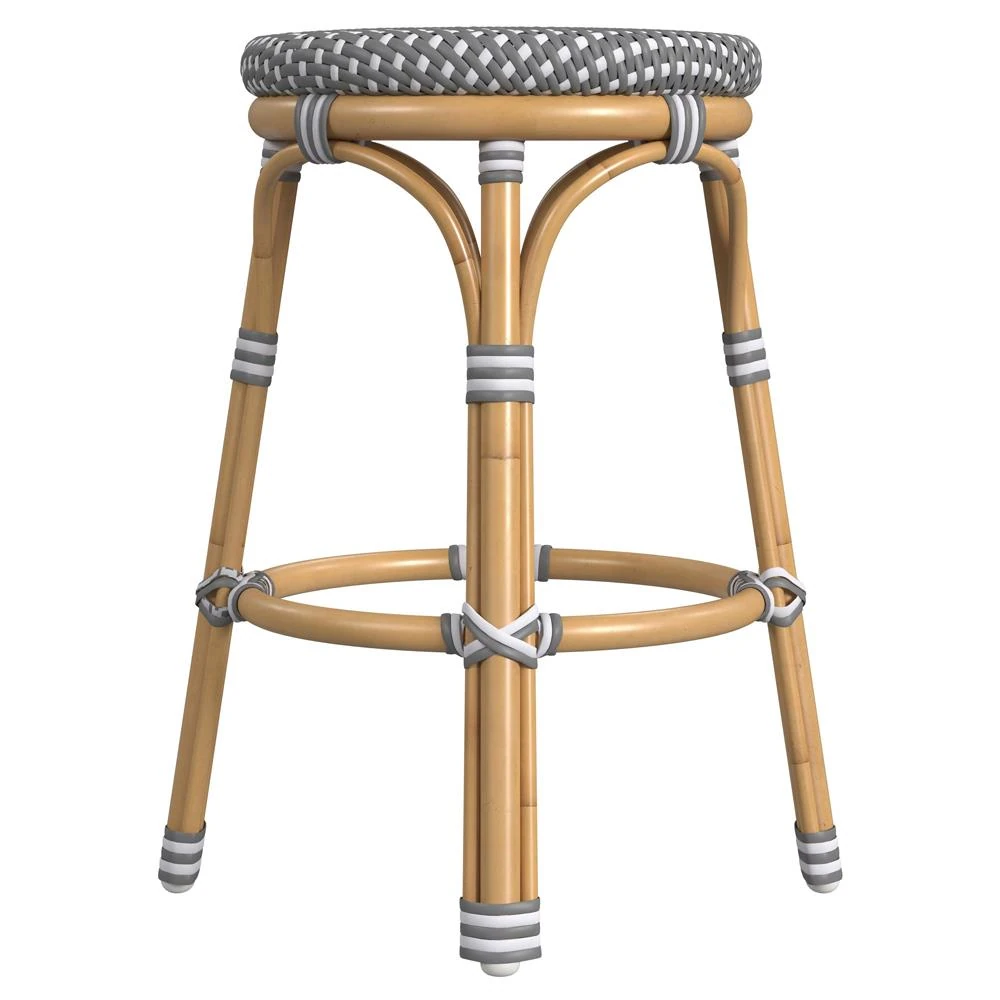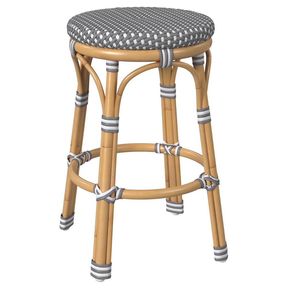 Lily French Country Grey White Woven Rattan Outdoor Backless Counter Stool